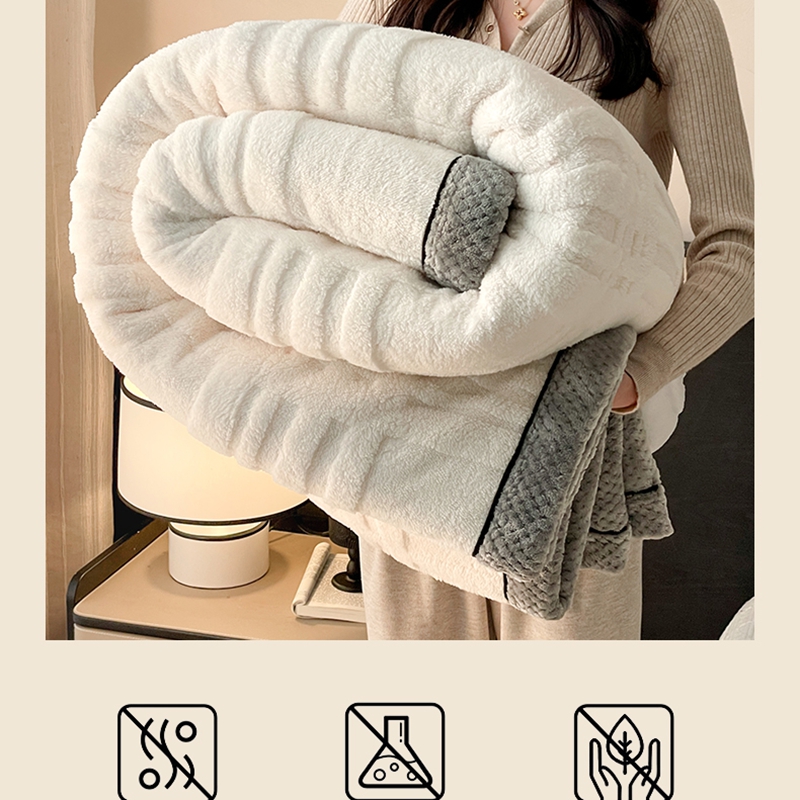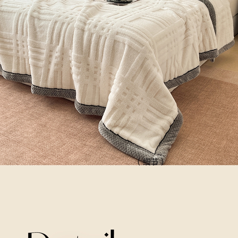 商品名称:欧邦 2025新款包边舒棉绒双面绒毛毯-格调系列 格调-霜白
