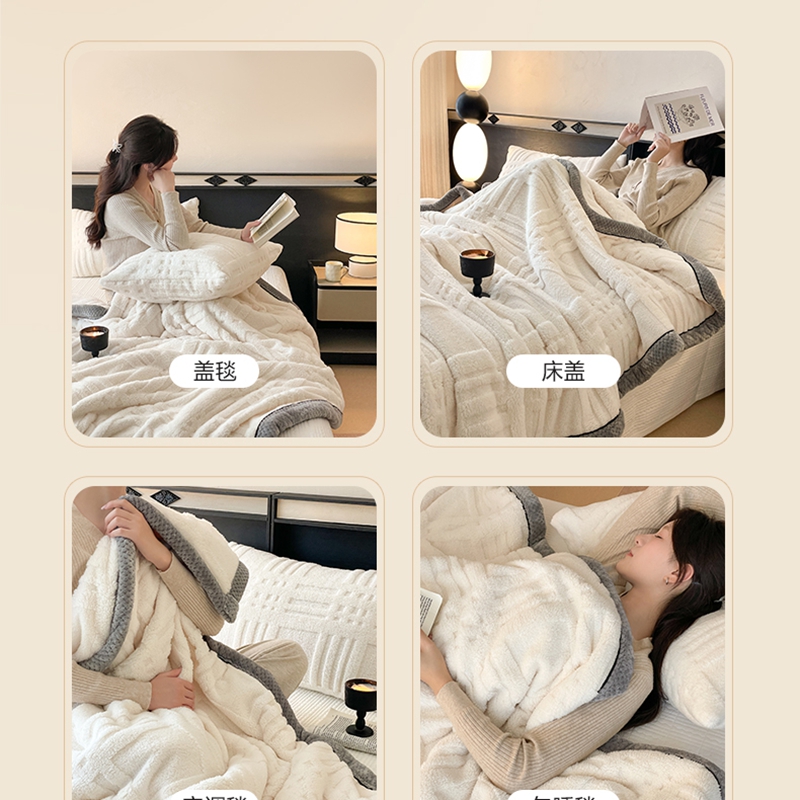 (总)欧邦 2025新款提花暖阳绒羊羔绒毛毯多功能盖毯-梦境系列,梦境-粉玉,梦境-幻白,梦境-米驼,梦境-桑绿,梦境-雾灰