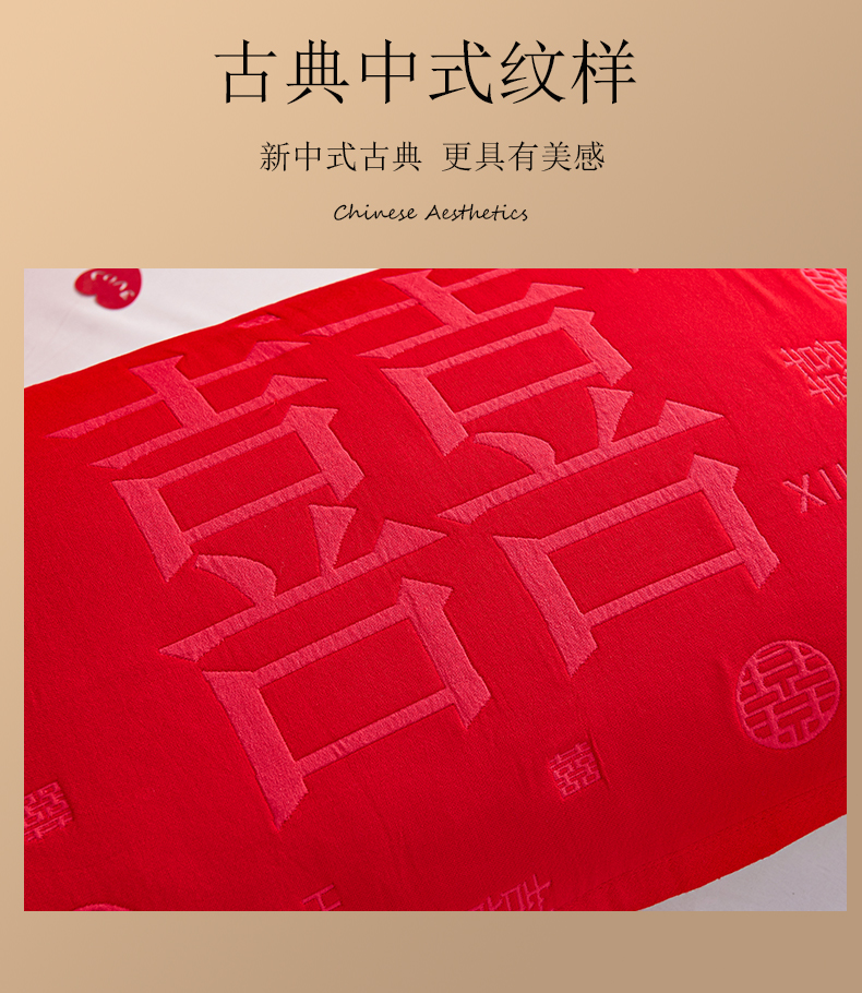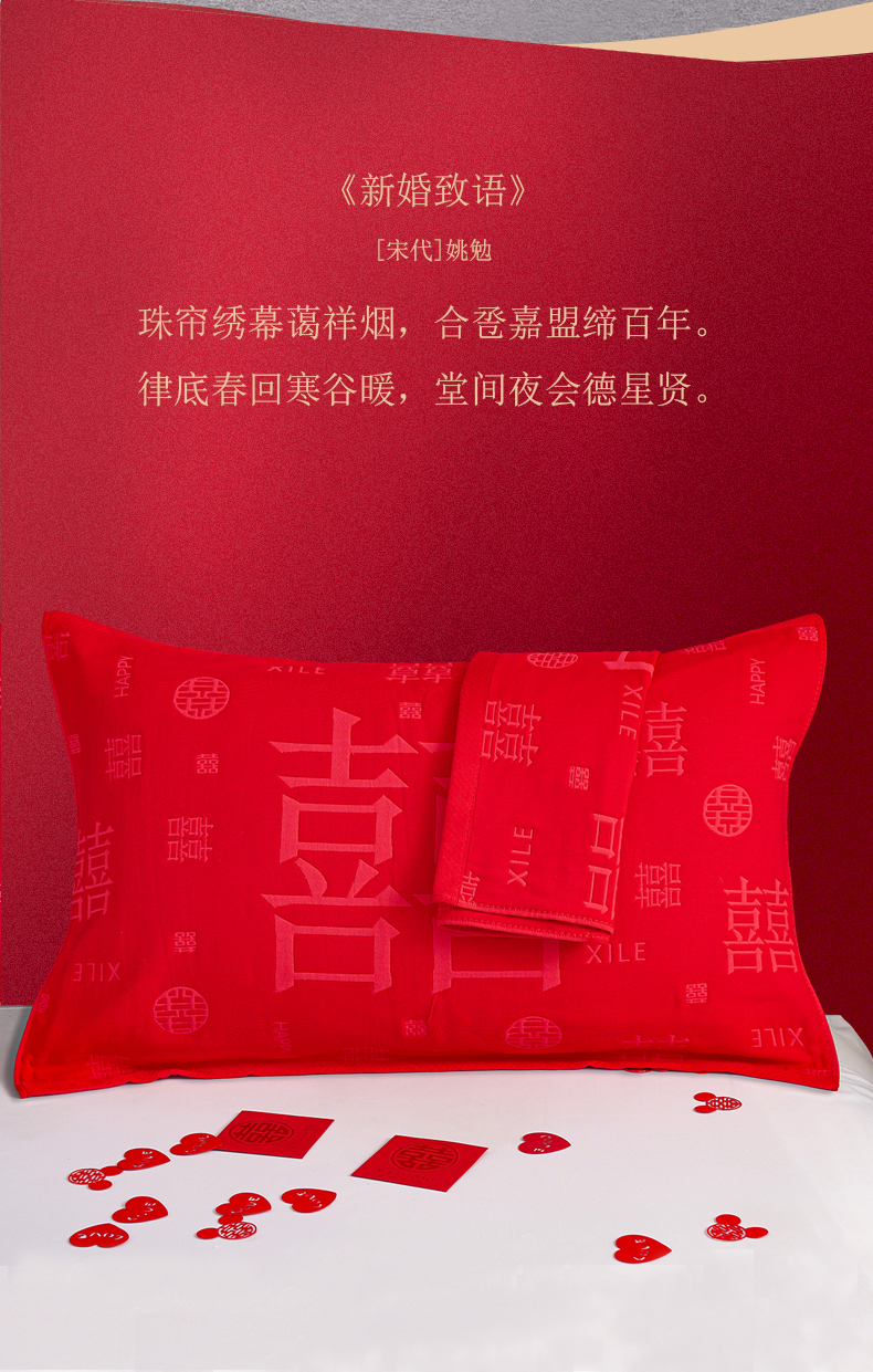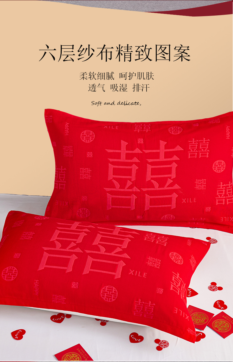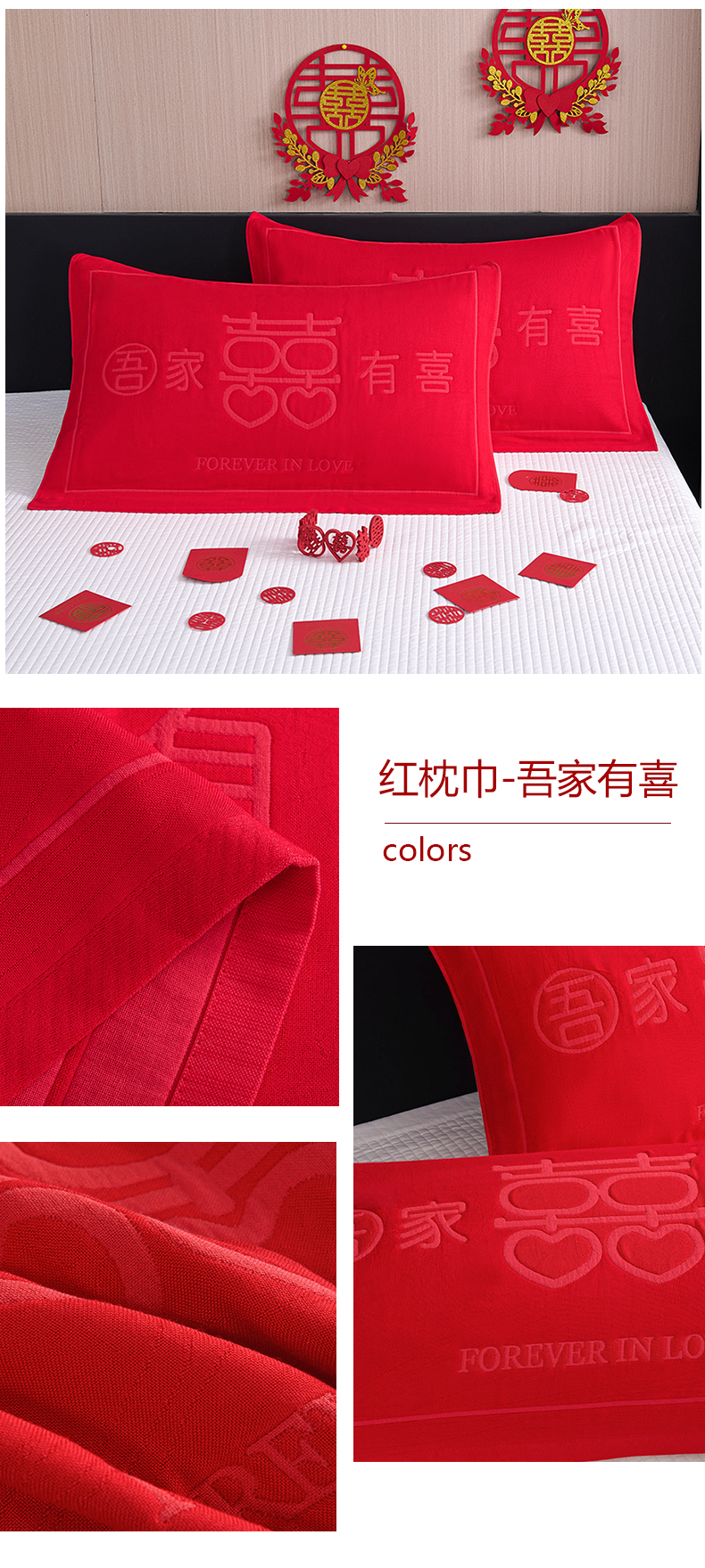 商品名称:棠薇家纺 2025新款全棉大红婚庆枕巾红色结婚全棉纱布枕巾盖巾垫巾 喜结连理