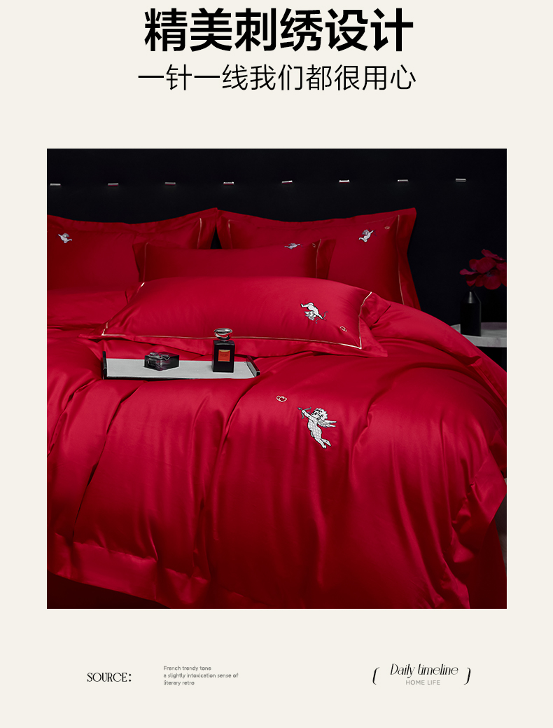 商品名称:欧乐蒂-2025新款-亲肤棉简约刺绣四件套 丘比特