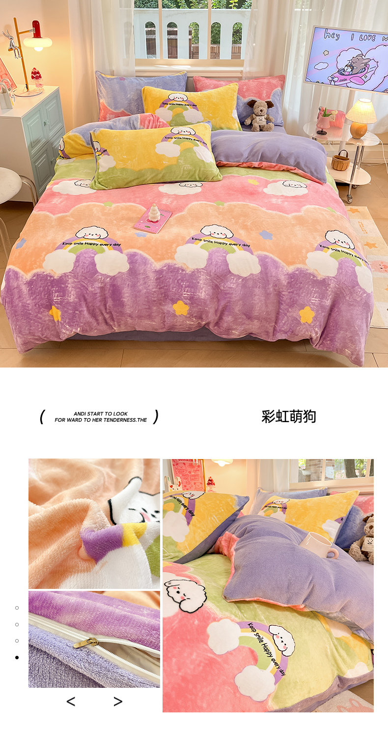 商品名称:席佬大 2025新款高克重印花牛奶绒系列四件套 彩虹萌狗