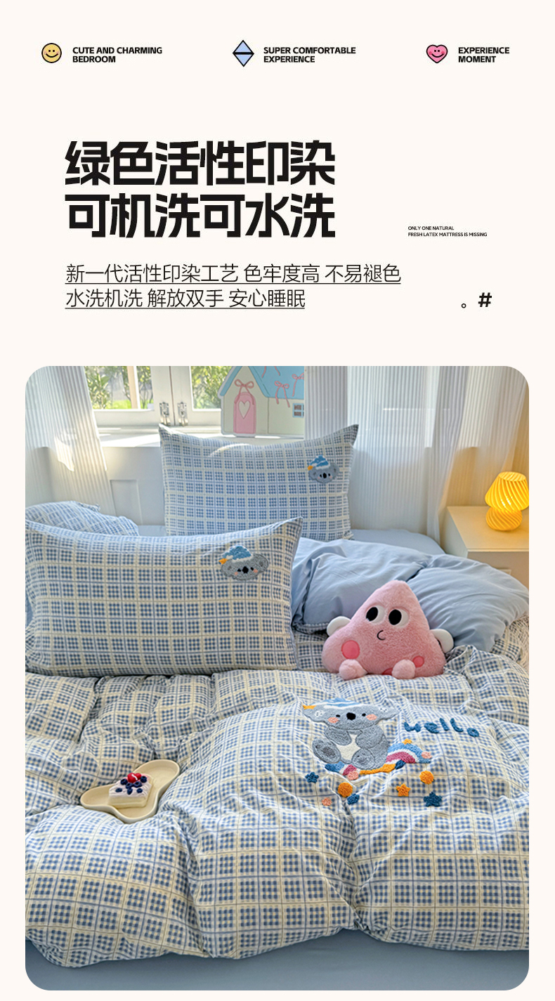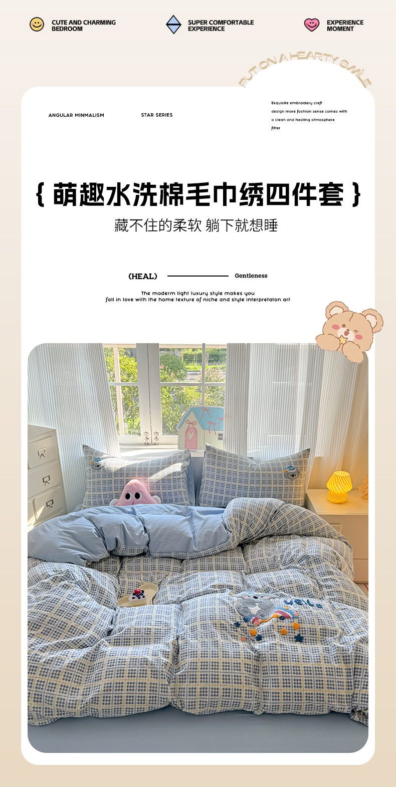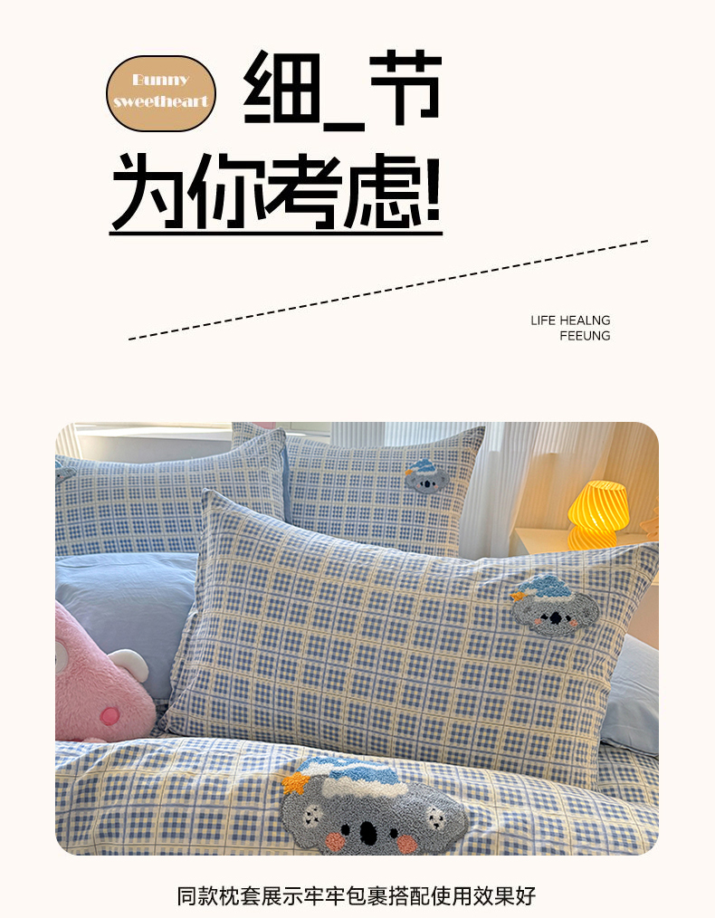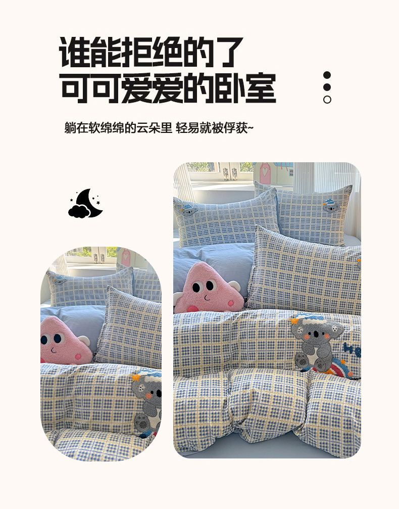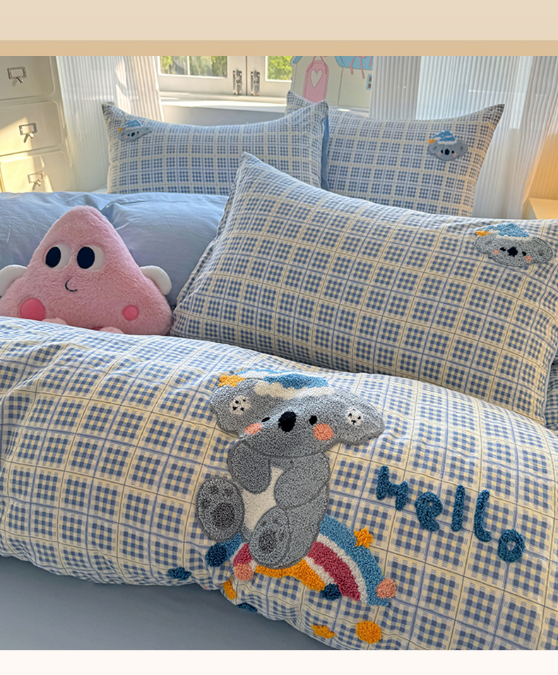当前位置: 91家纺网 > 商品网购 > 床品套件 > 四件套 > 毛巾绣四件套 > 沃朴家居 2025新款萌趣水洗棉毛巾绣四件套 彩虹考拉