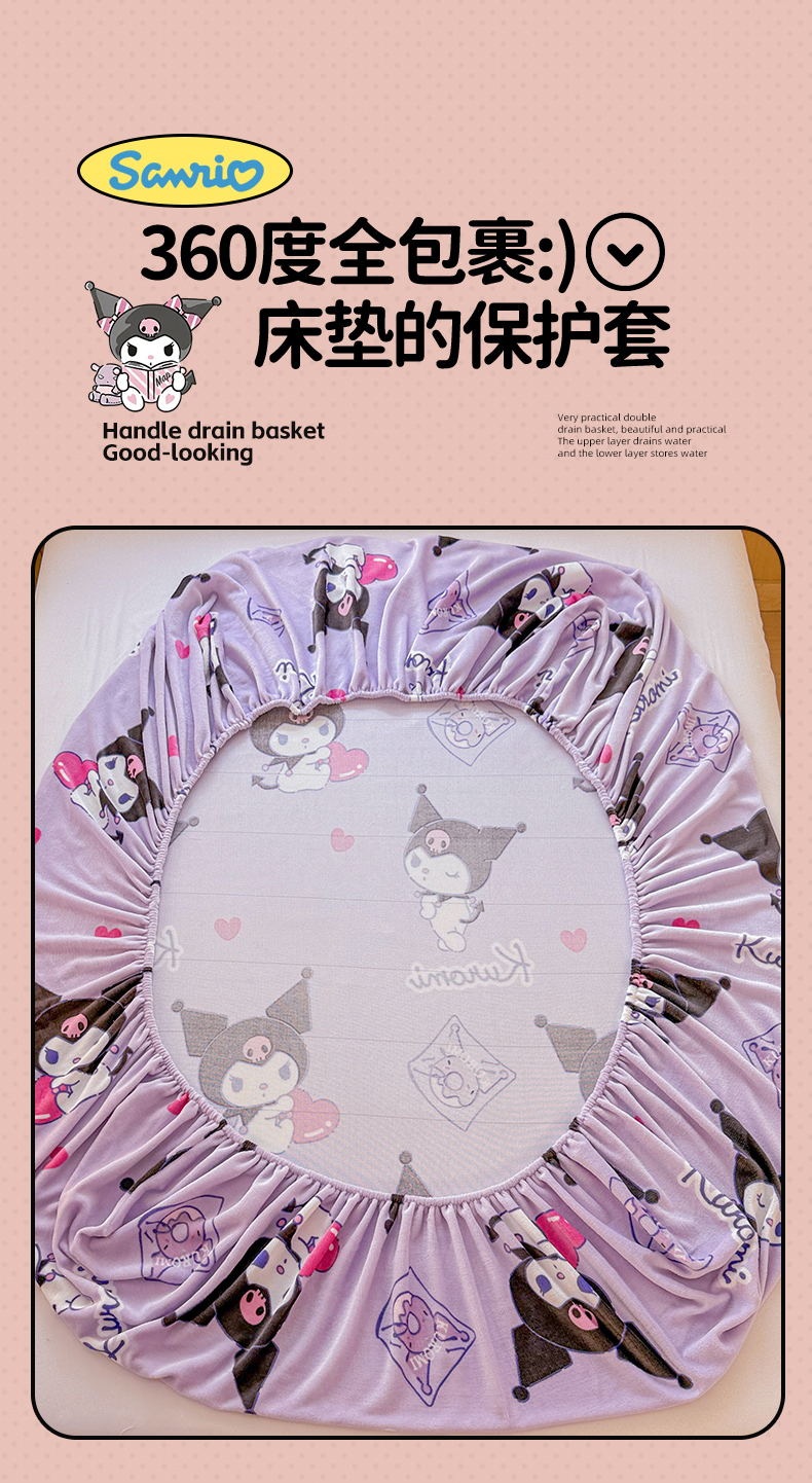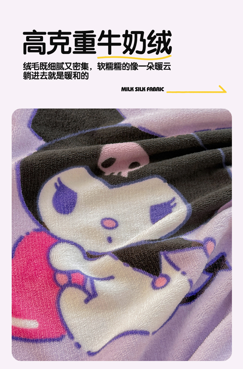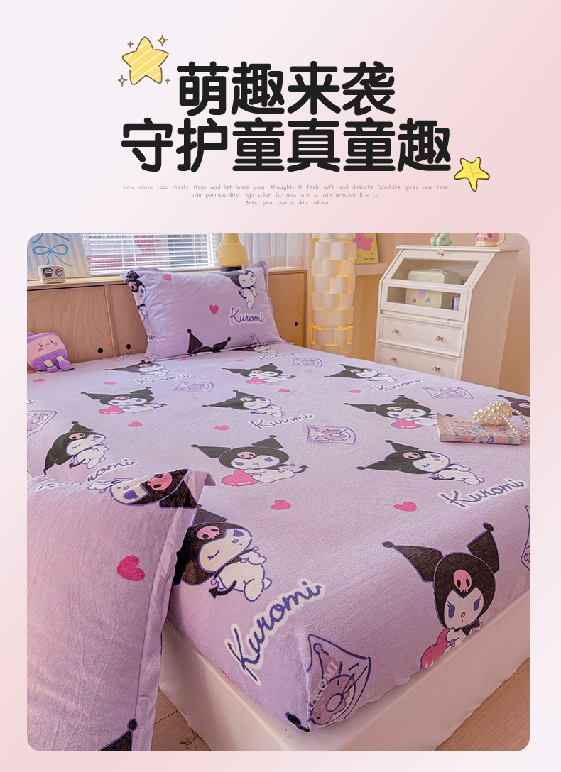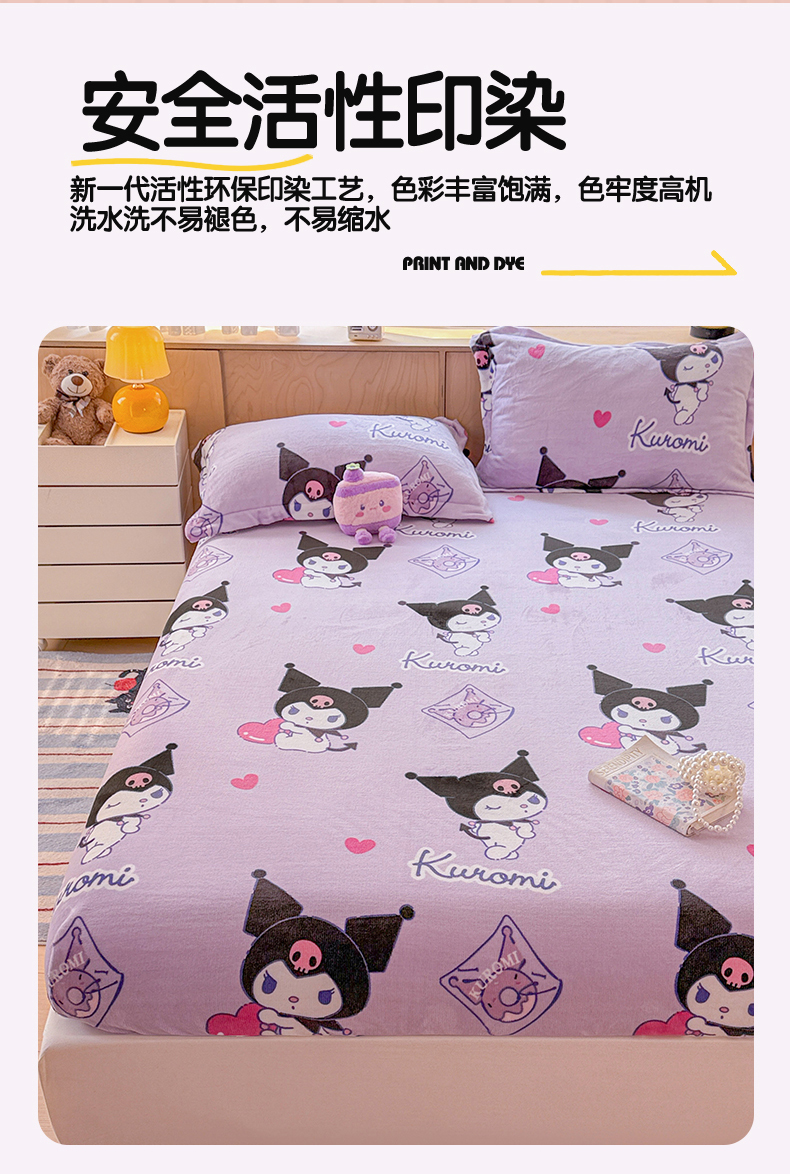• 91家纺网 家纺一手货源 找家纺 名兮-2025经典奥特曼-三丽鸥高克重印花牛奶绒床笠 紫色库洛米