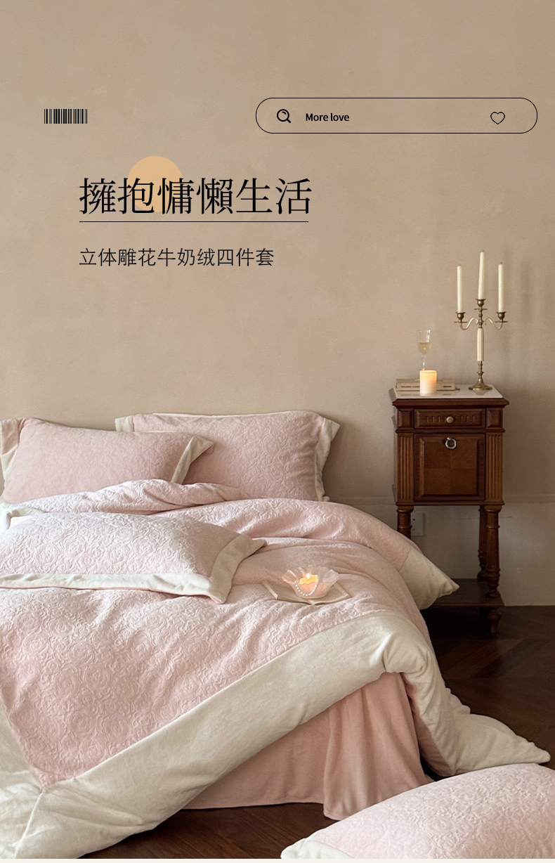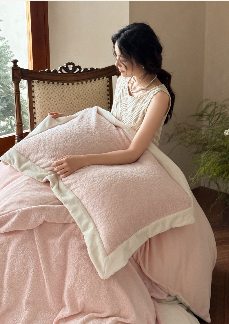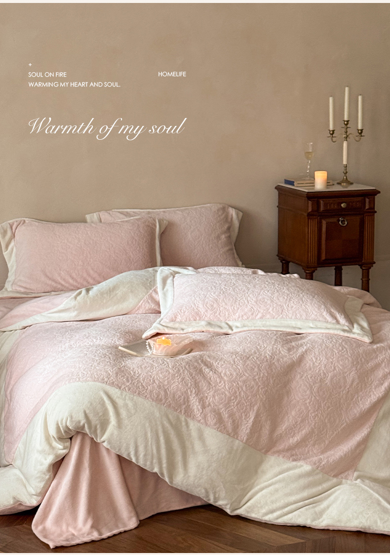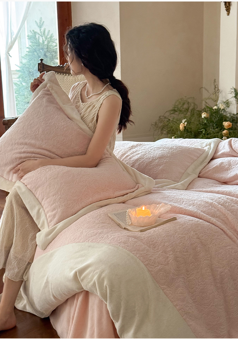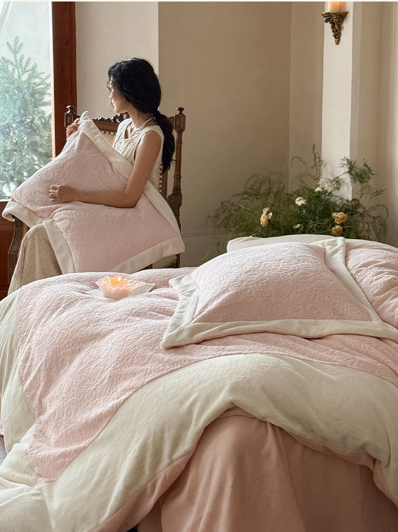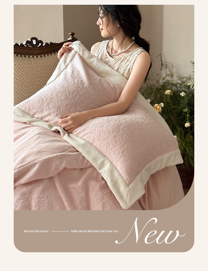 (总)云栖家居 2025秋冬新品立体消光印花雕花绒加厚高克重牛奶绒四件套星辰玫瑰,星辰玫瑰-粉,星辰玫瑰-绿