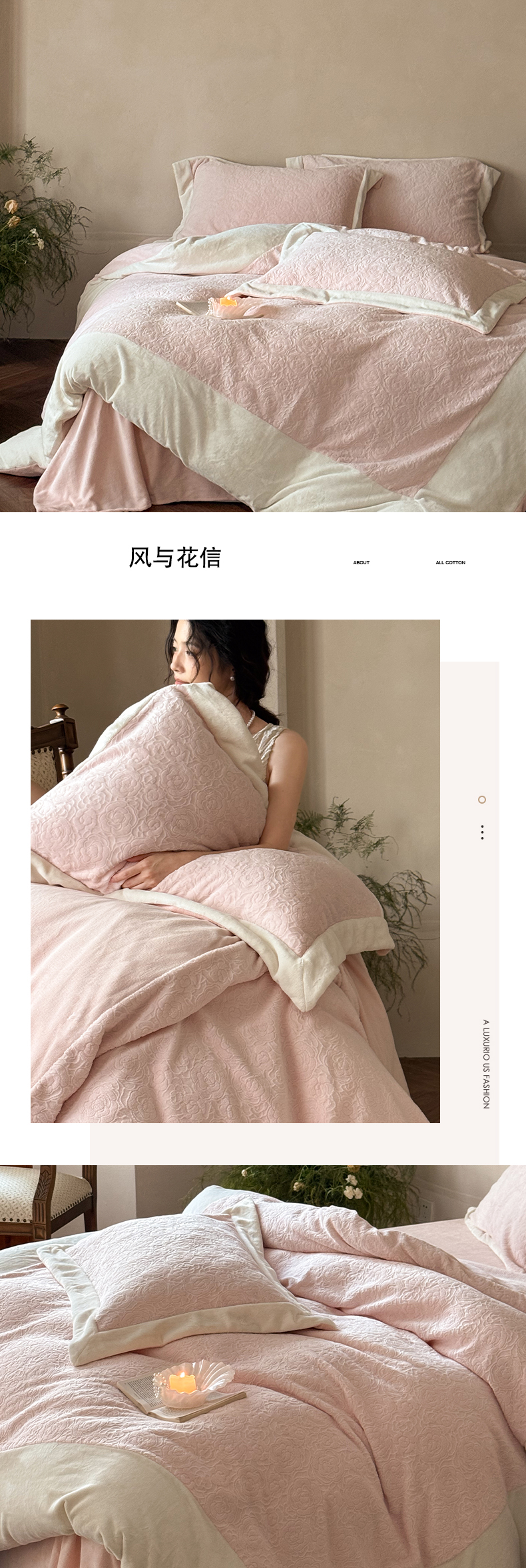商品名称:云栖家居 2025秋冬消光加厚立体雕花牛奶绒四件套系列-元英系列(控价不低于199) 风与花信