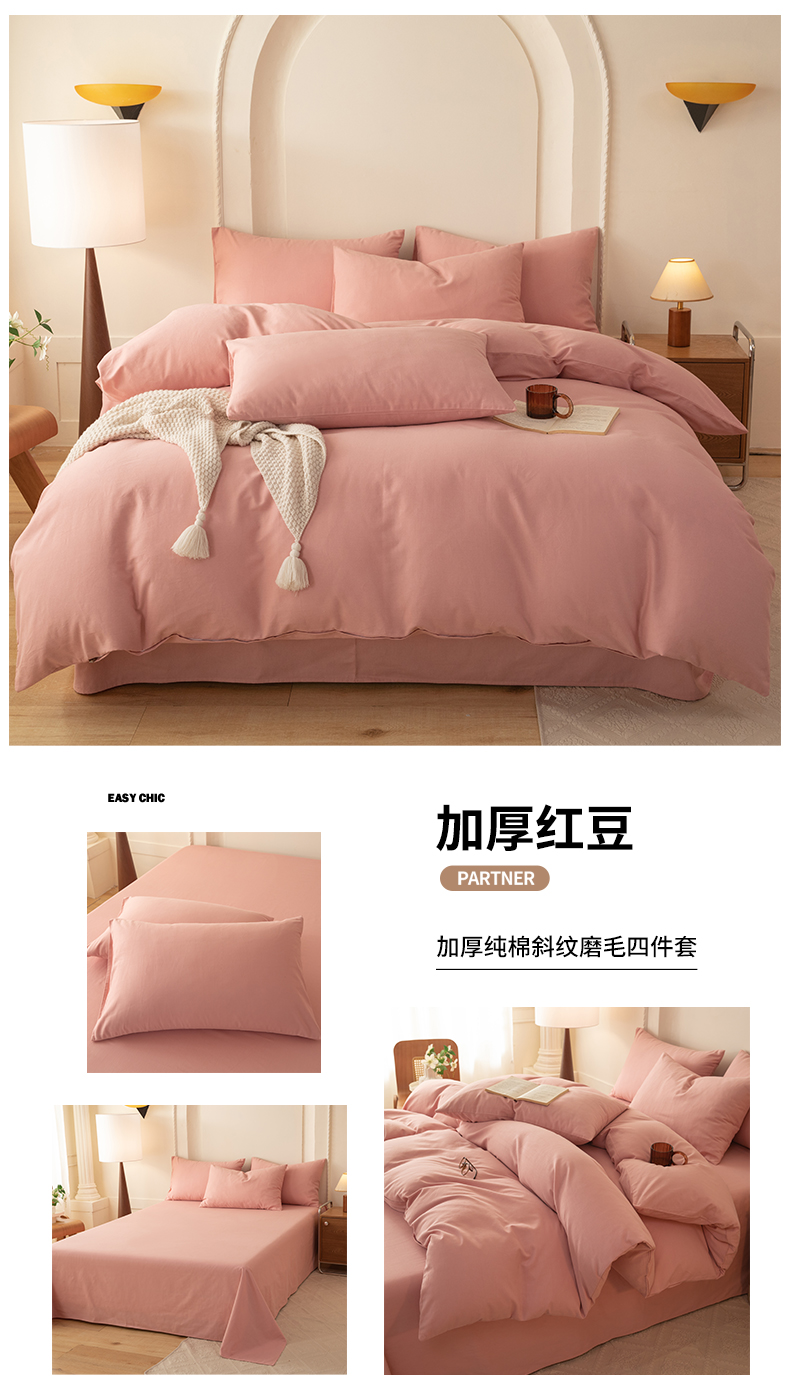 当前位置: 91家纺网 > 商品网购 > 床品套件 > 四件套 > 全棉普通四件套 > 八十八家纺 2025新款纯棉加厚磨毛四件套及单品系列-四件套 加厚红豆