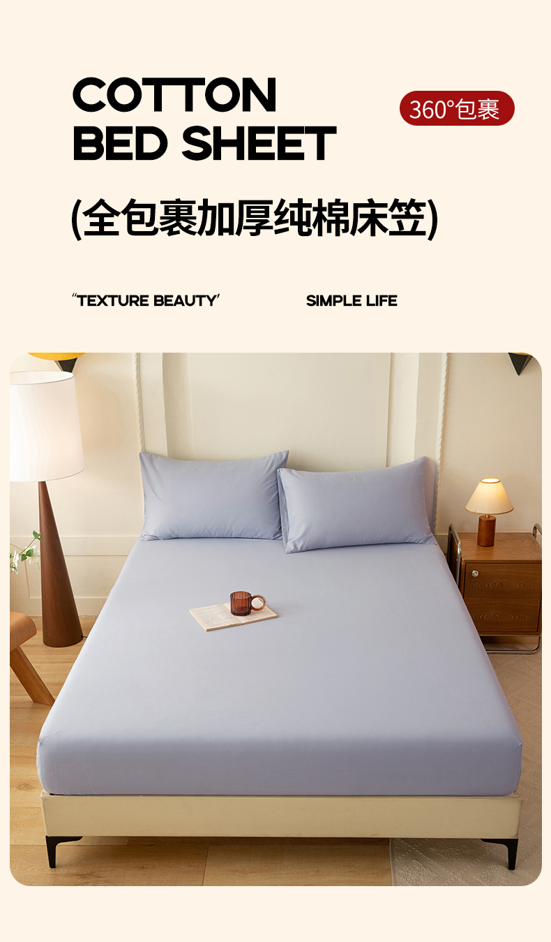 八十八家纺 2025新款纯棉加厚磨毛四件套及单品系列-单床笠 加厚天蓝