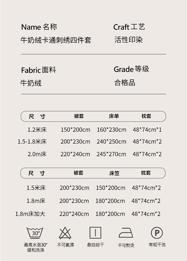 1.8m床笠款四件套 | ¥135.00 |