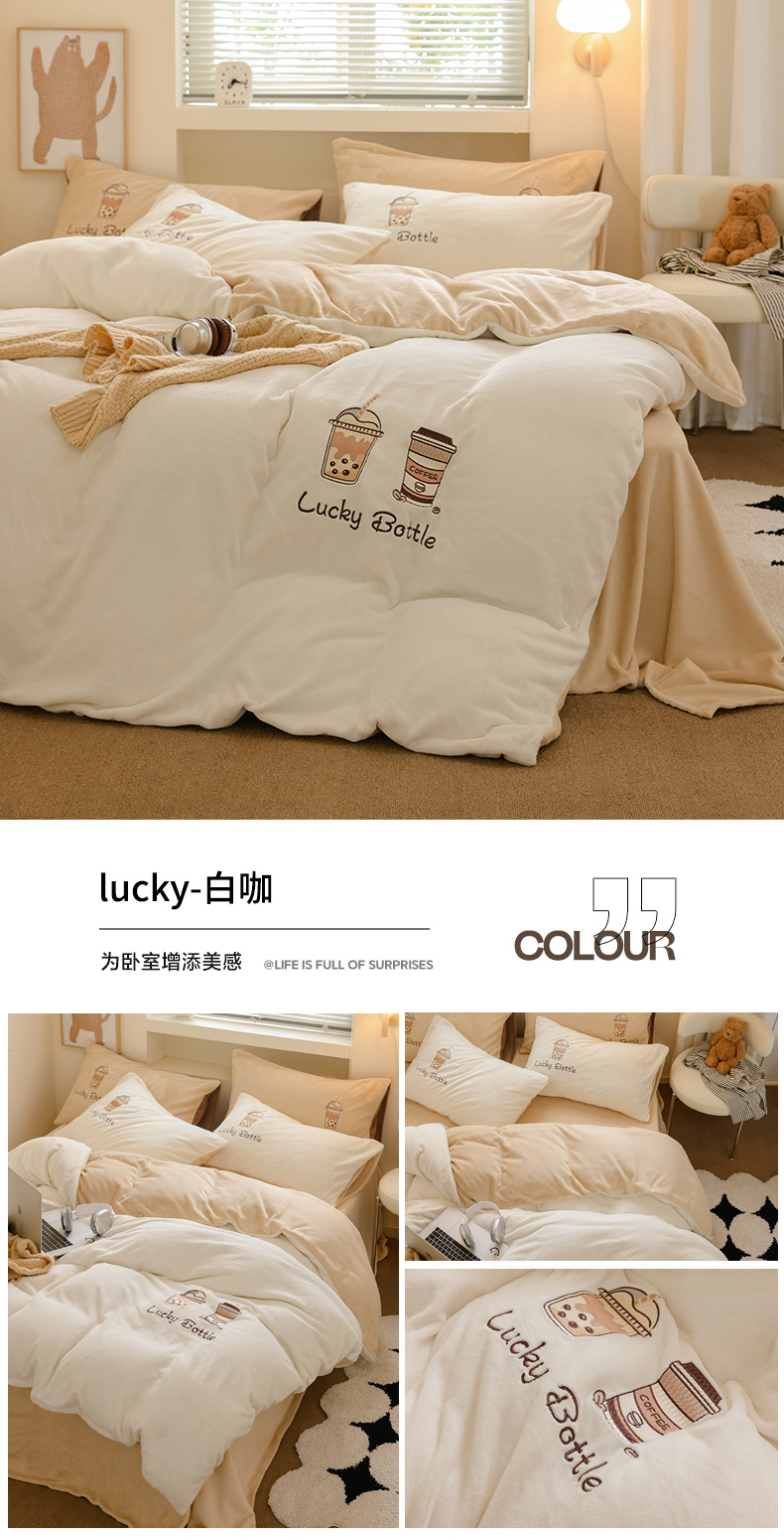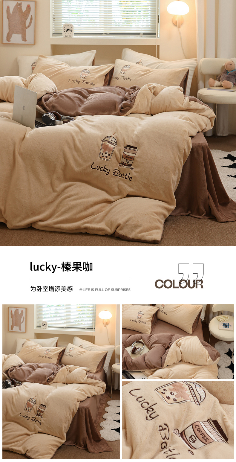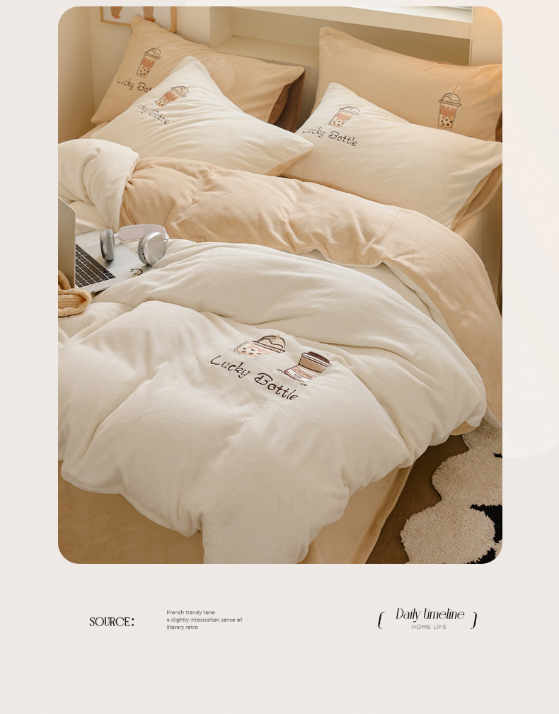 当前位置: 91家纺网 > 商品网购 > 床品套件 > 四件套 > 牛奶绒四件套 > ONE TWO ONE 121 新品【牛奶绒刺绣四件套】2025毛毯被子四件套单件床单被套床笠珊瑚绒牛奶绒冬被法兰绒兔毛绒Lucky Lucky-深灰