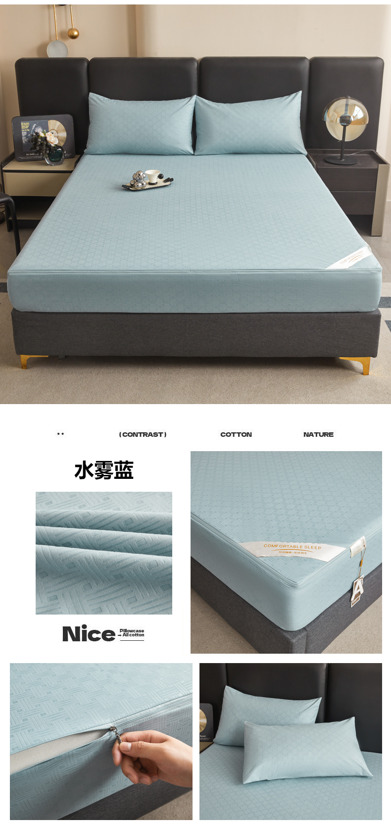 商品名称:(总)糯米猪家纺 2025春夏新款亲肤棉六面全包防水压花床笠单件单床笠
