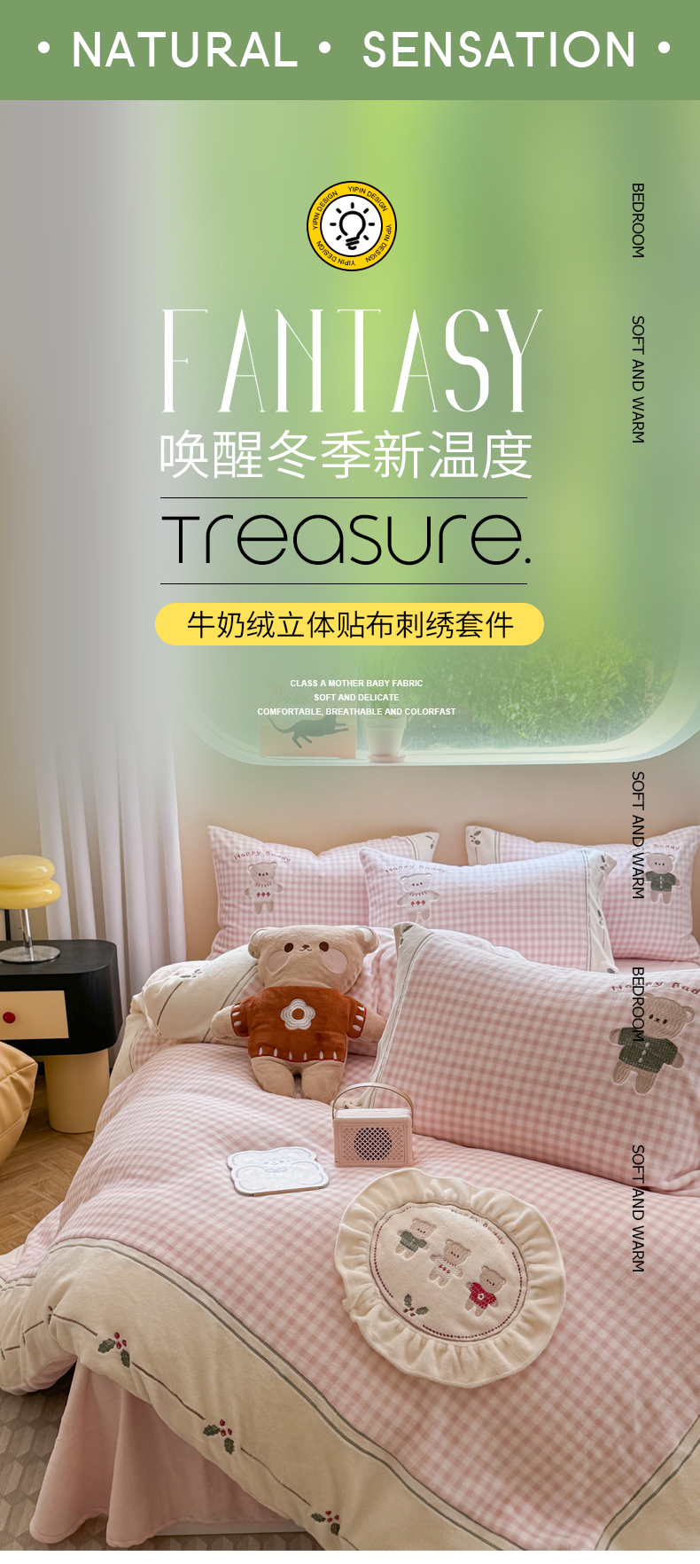 当前位置: 91家纺网 > 商品网购 > 床品套件 > 四件套 > 其它四件套 > (总)慕晨 2025新款高克重牛奶绒卡通绣花可爱加厚牛奶绒四件套小清新小红书风直播-本本熊