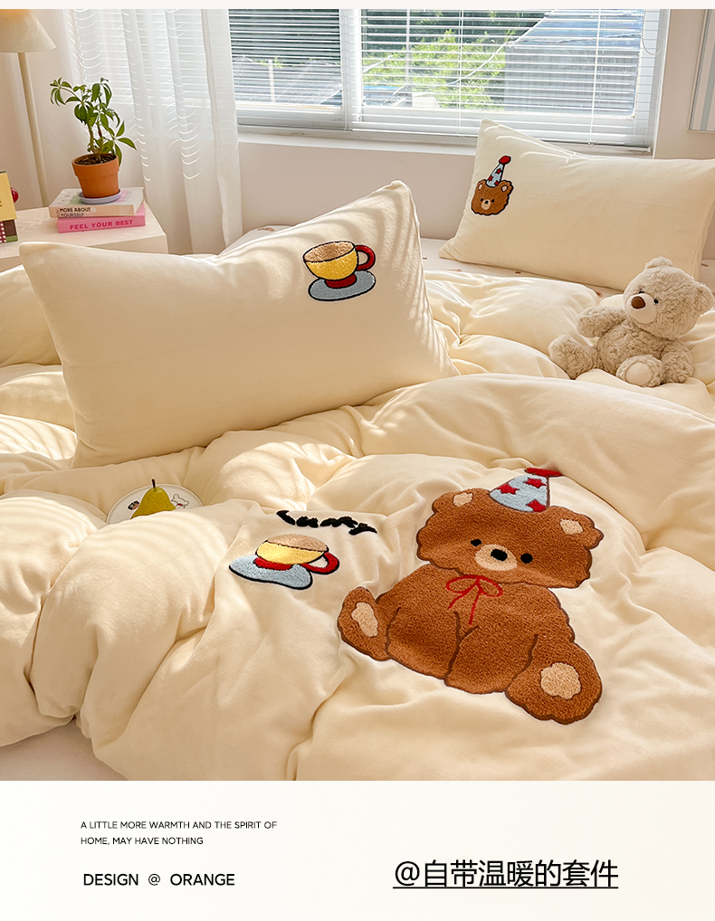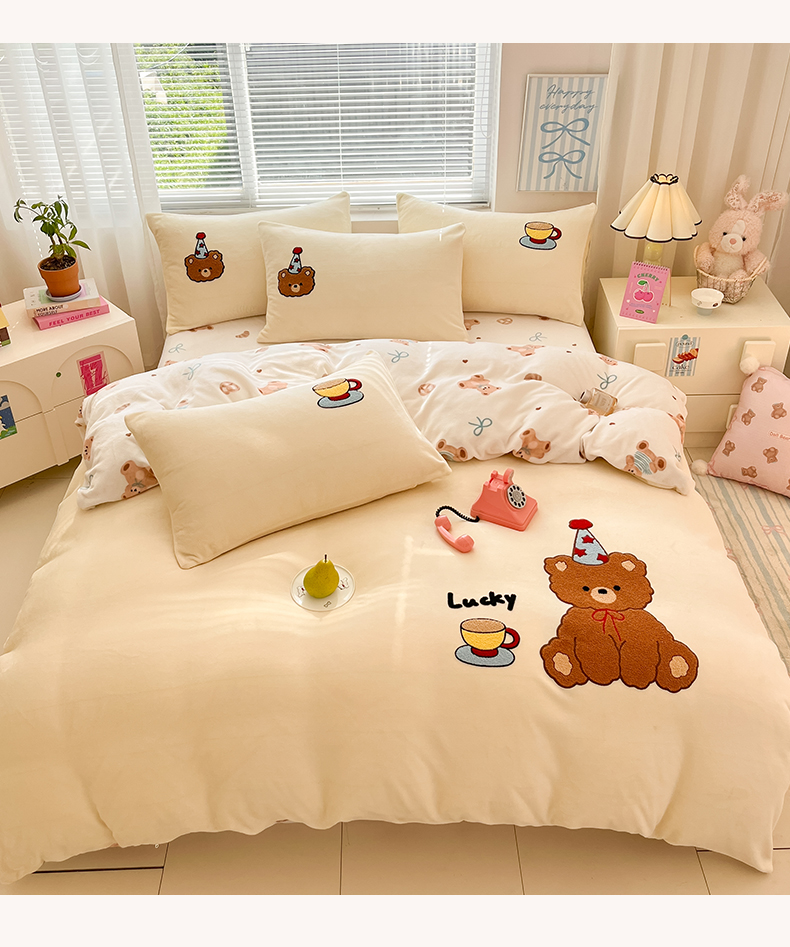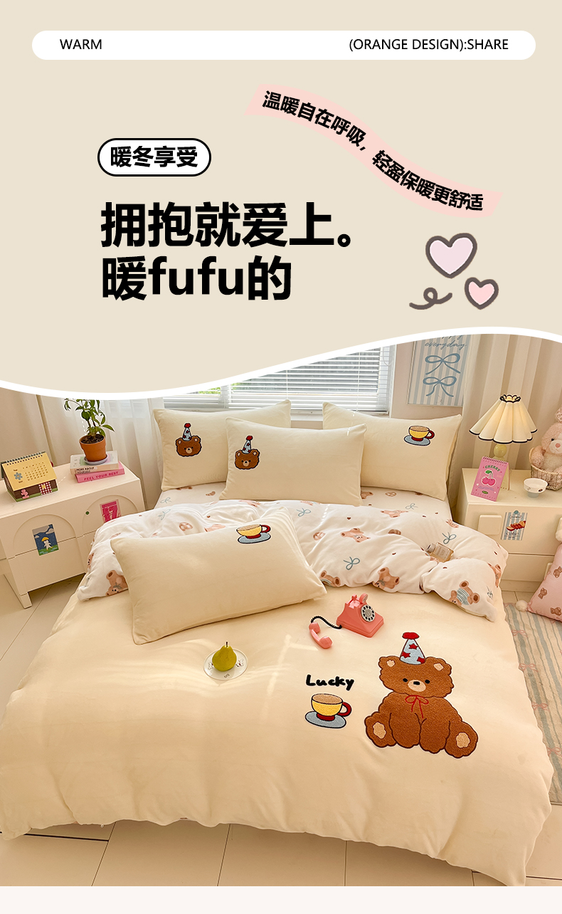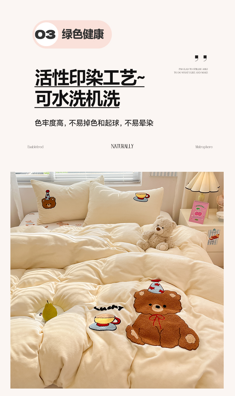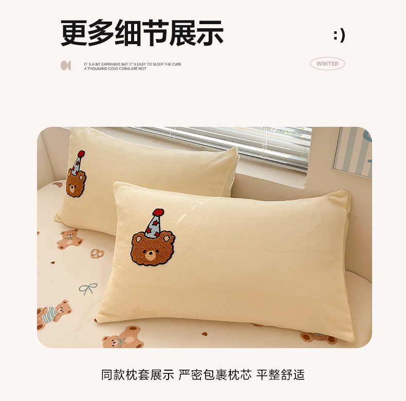 当前位置: 91家纺网 > 商品网购 > 床品套件 > 四件套 > 牛奶绒四件套 > 寐居家纺 2025新款牛奶绒大版毛巾绣床单款四件套 惬意小熊