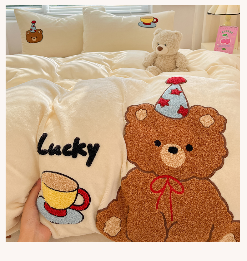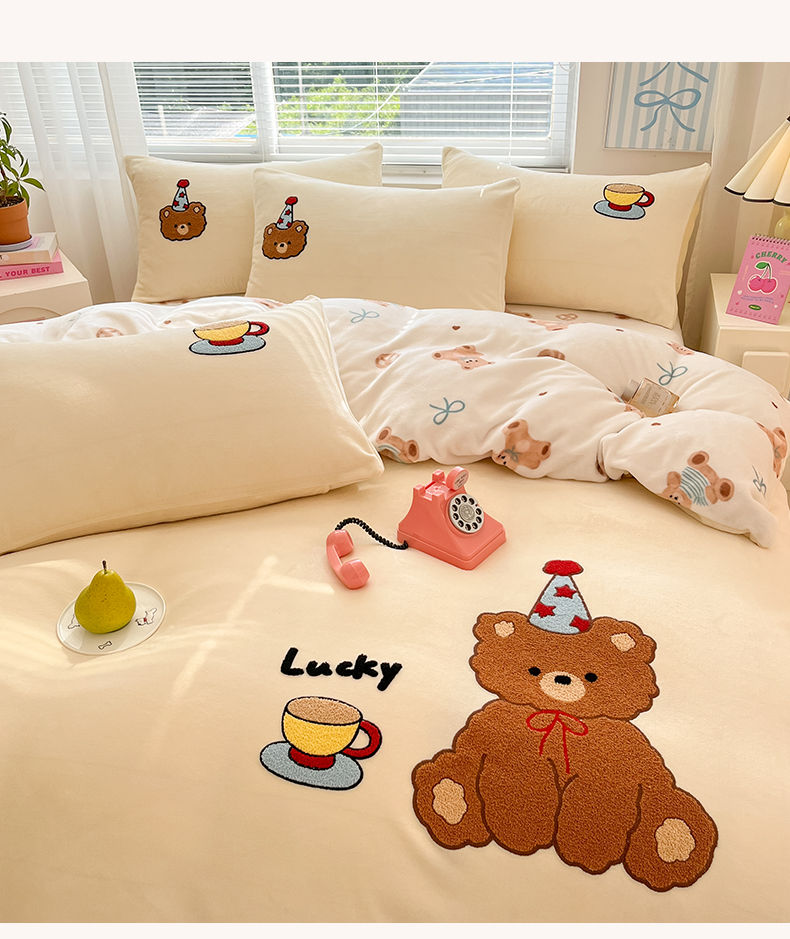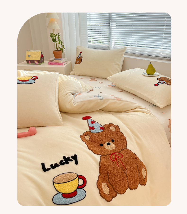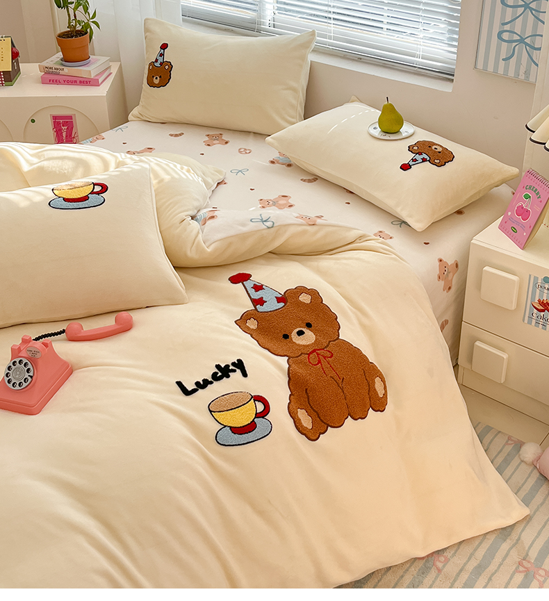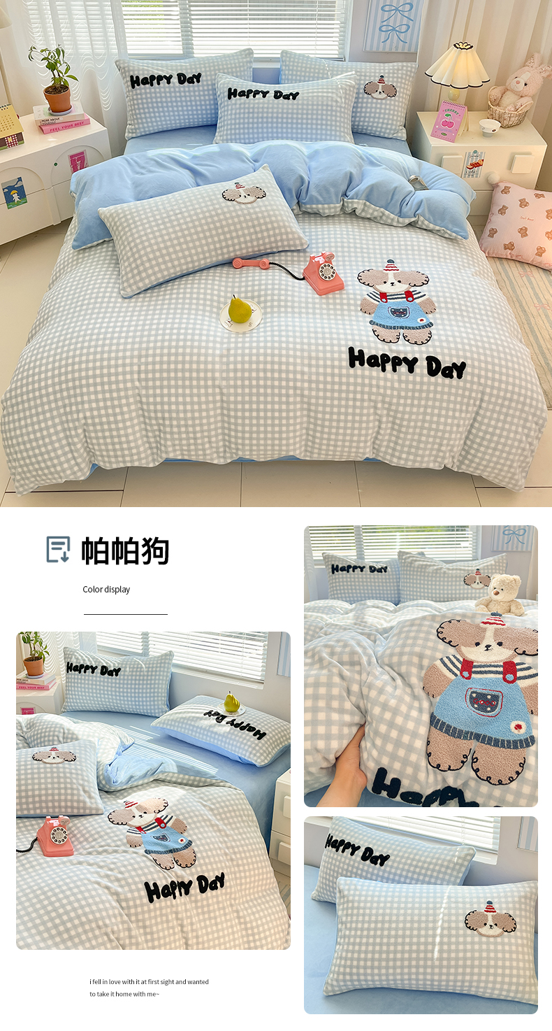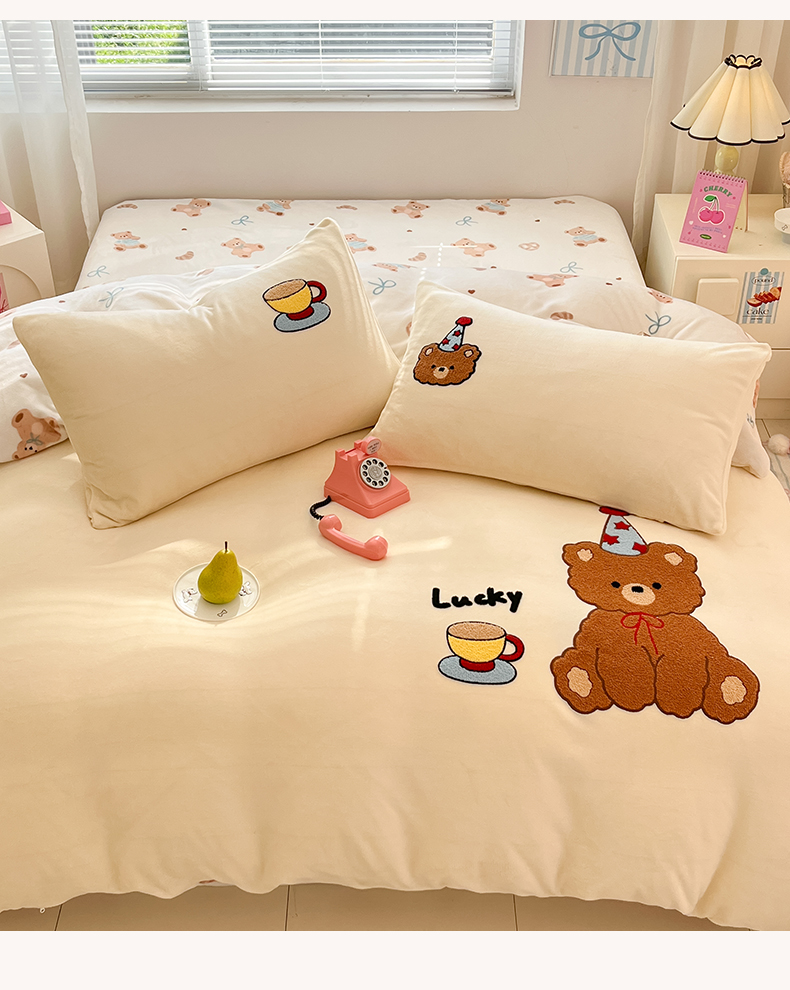 当前位置: 91家纺网 > 商品网购 > 床品套件 > 四件套 > 牛奶绒四件套 > 寐居家纺 2025新款牛奶绒大版毛巾绣床单款四件套 惬意小熊