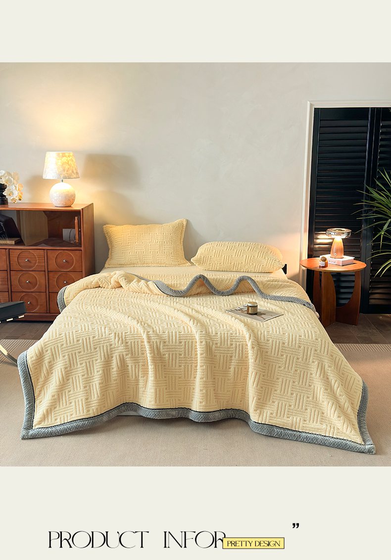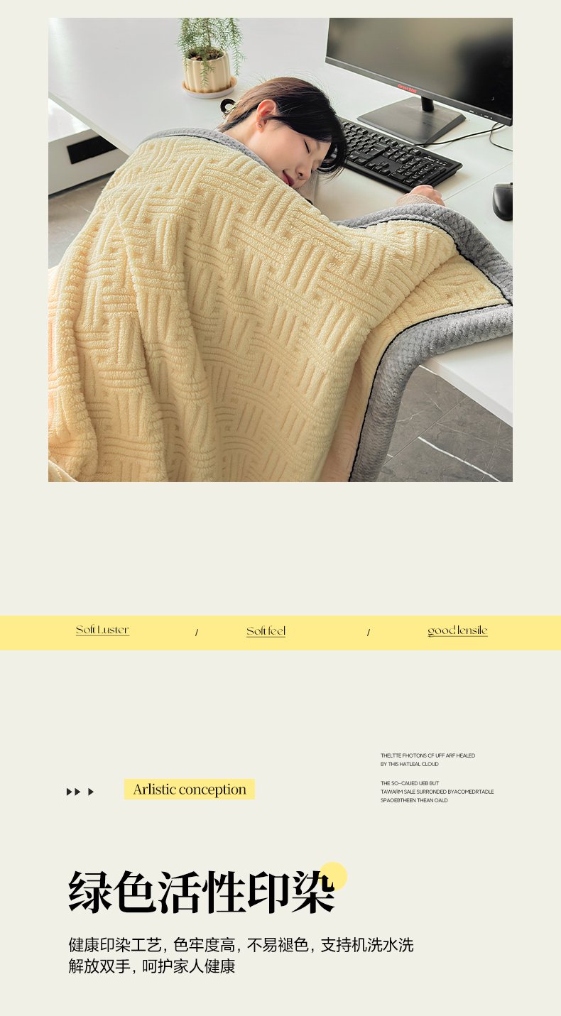 商品名称:欧邦 2025新款A类提花舒棉绒双面绒单层毯 稻香黄