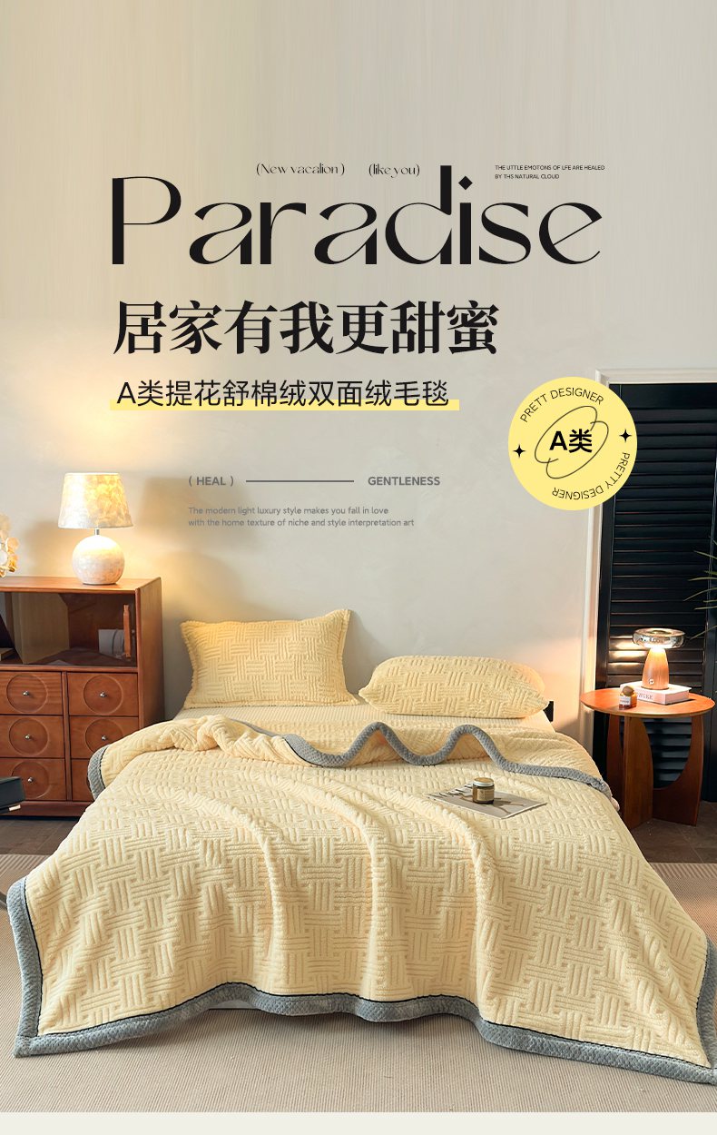 (总)欧邦 2025新款轻奢暖阳绒提花双面绒单层毯毯子,单层毯-初雪白,单层毯-苍穹蓝,单层毯-海棠粉,单层毯-慕斯灰,单层毯-青瓷绿,单层毯-檀木咖