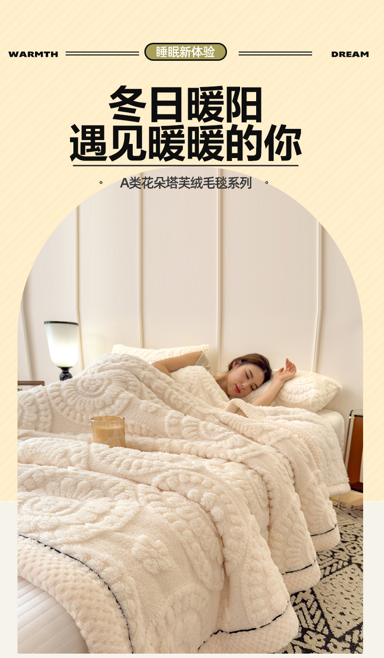 (总)乐家欣 2025新款提塔芙绒绒羊羔绒毛毯-繁花,繁花-复古绿,繁花-公主粉,繁花-深灰,繁花-午夜蓝,繁花-香槟咖,繁花-象牙白,繁花-月影灰