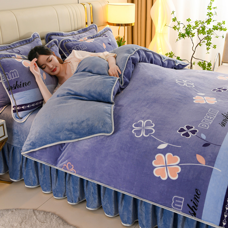 沐妍家纺 2025新款8斤加厚保暖金貂绒牛奶绒印花四件套 四叶草