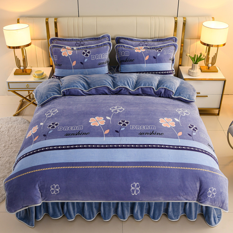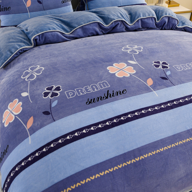 商品名称:沐妍家纺 2025新款8斤加厚保暖金貂绒牛奶绒印花四件套 四叶草