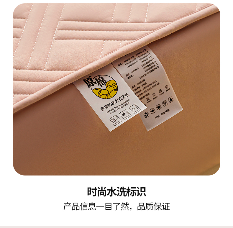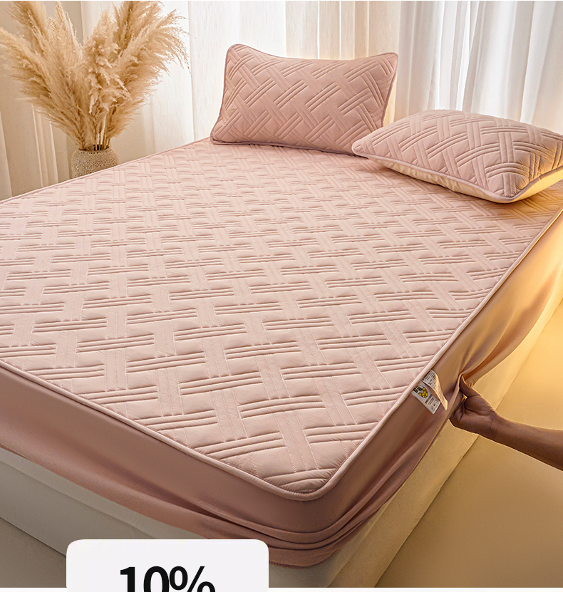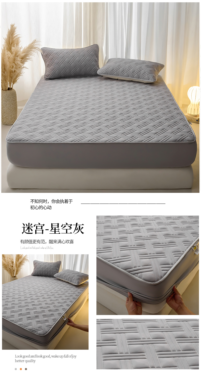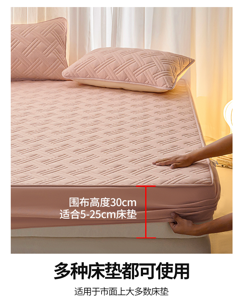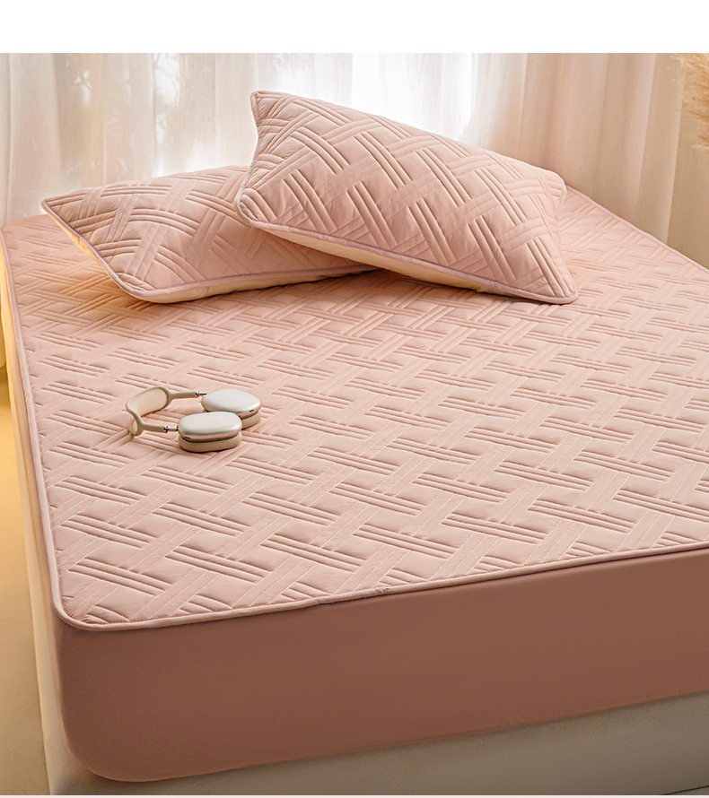 小叮当家纺仓储工厂店 2025新款A类原棉大豆防水床笠单品床笠单件单床笠隔尿夹棉床笠床垫保护罩外贸跨境 迷宫-玉粉