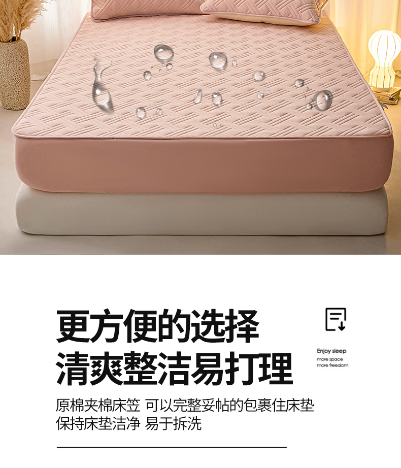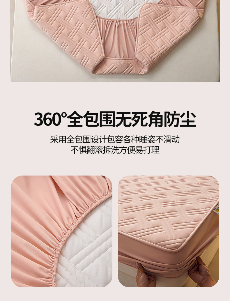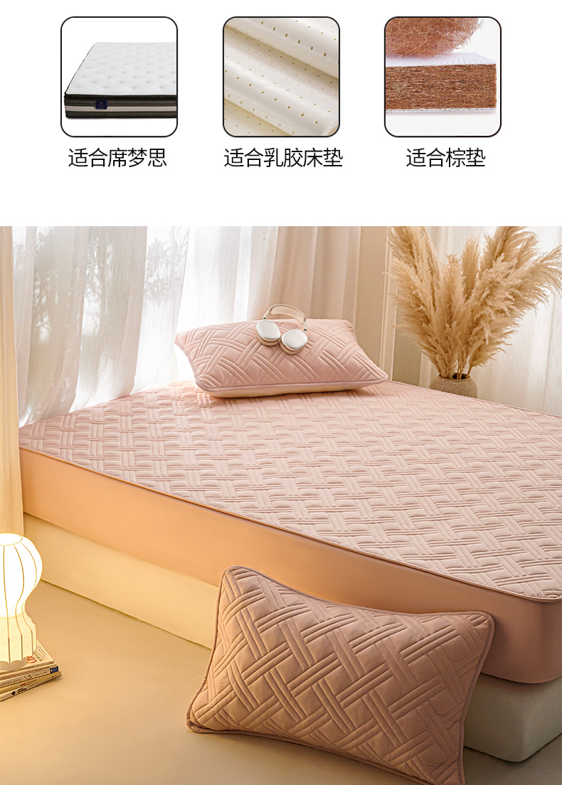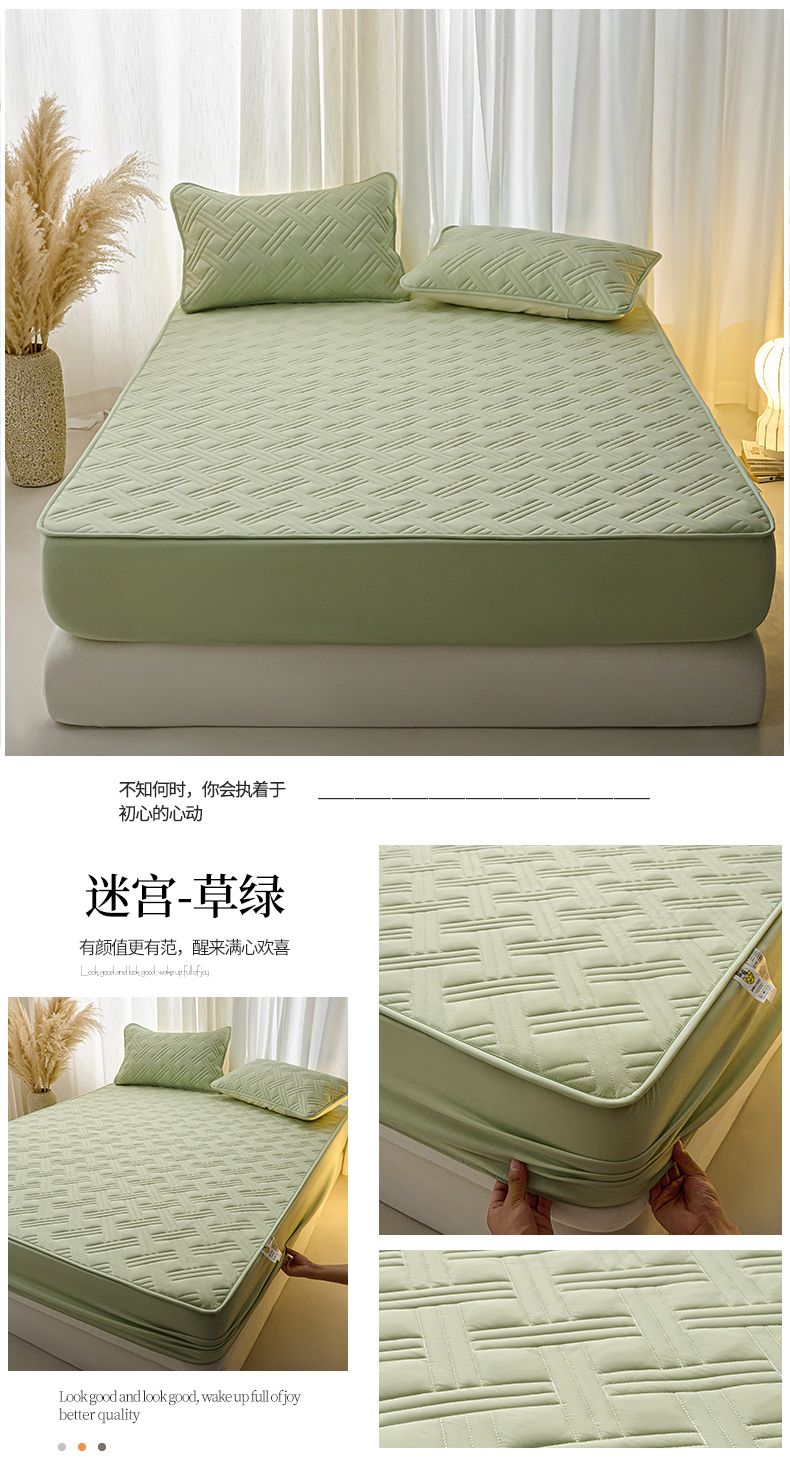 小叮当家纺仓储工厂店 2025新款A类原棉大豆防水床笠单品床笠单件单床笠隔尿夹棉床笠床垫保护罩外贸跨境 迷宫-玉粉