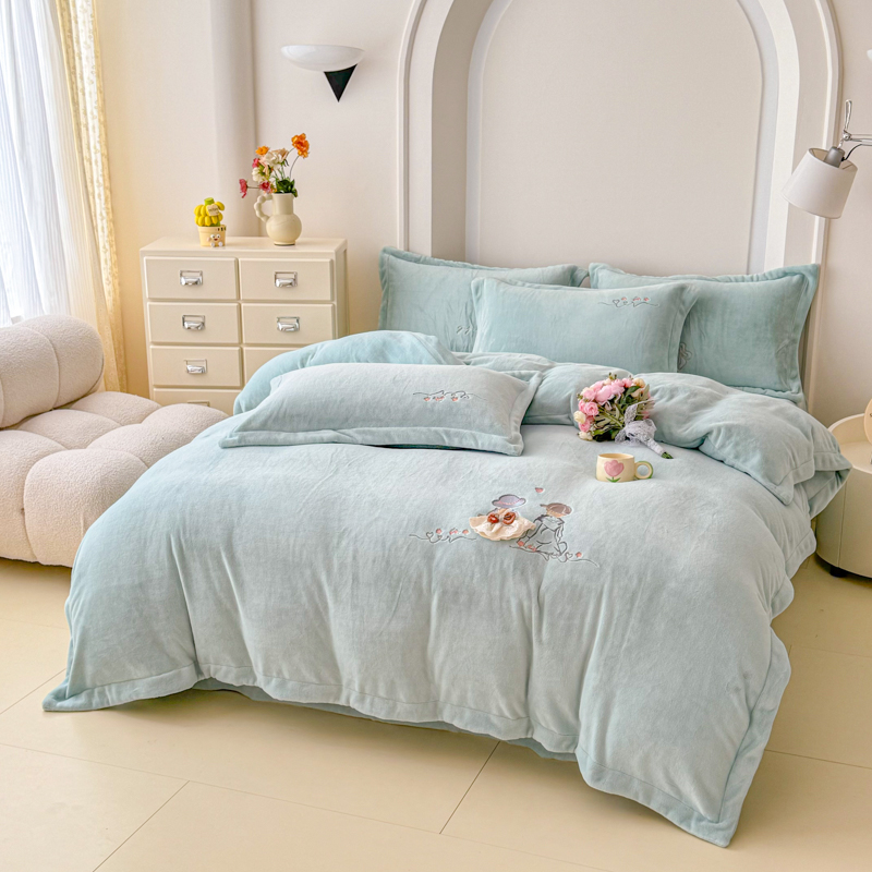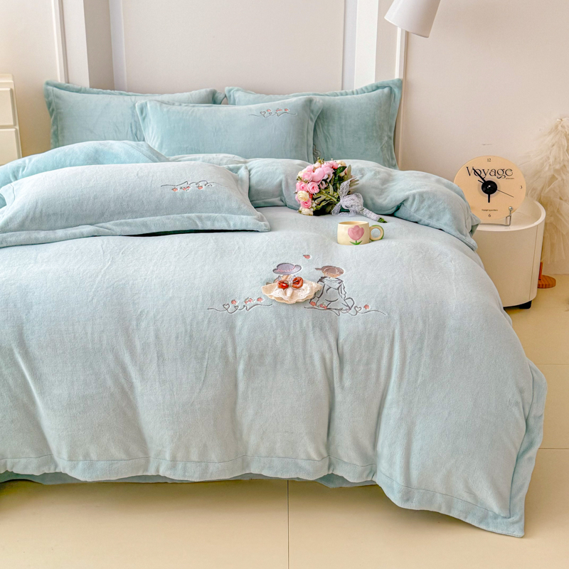 保罗圣迪奥 2025新款250克全消光牛奶绒四件套-安妮 安妮-浅蓝色