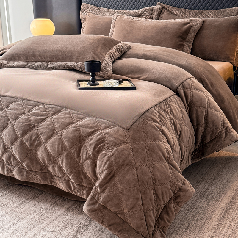 (总)保罗圣迪奥 2025新款250克全消光三拼角双C四件套-沐凡系列一,粉色,卡其,深灰色,深咖色,紫色
