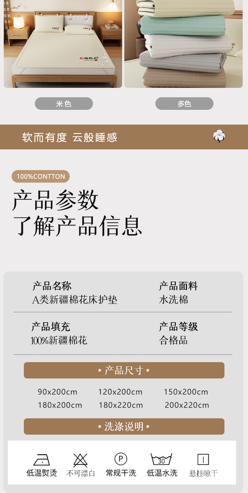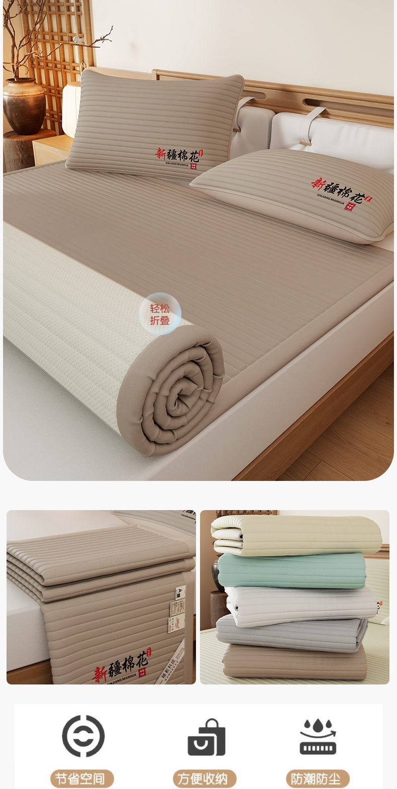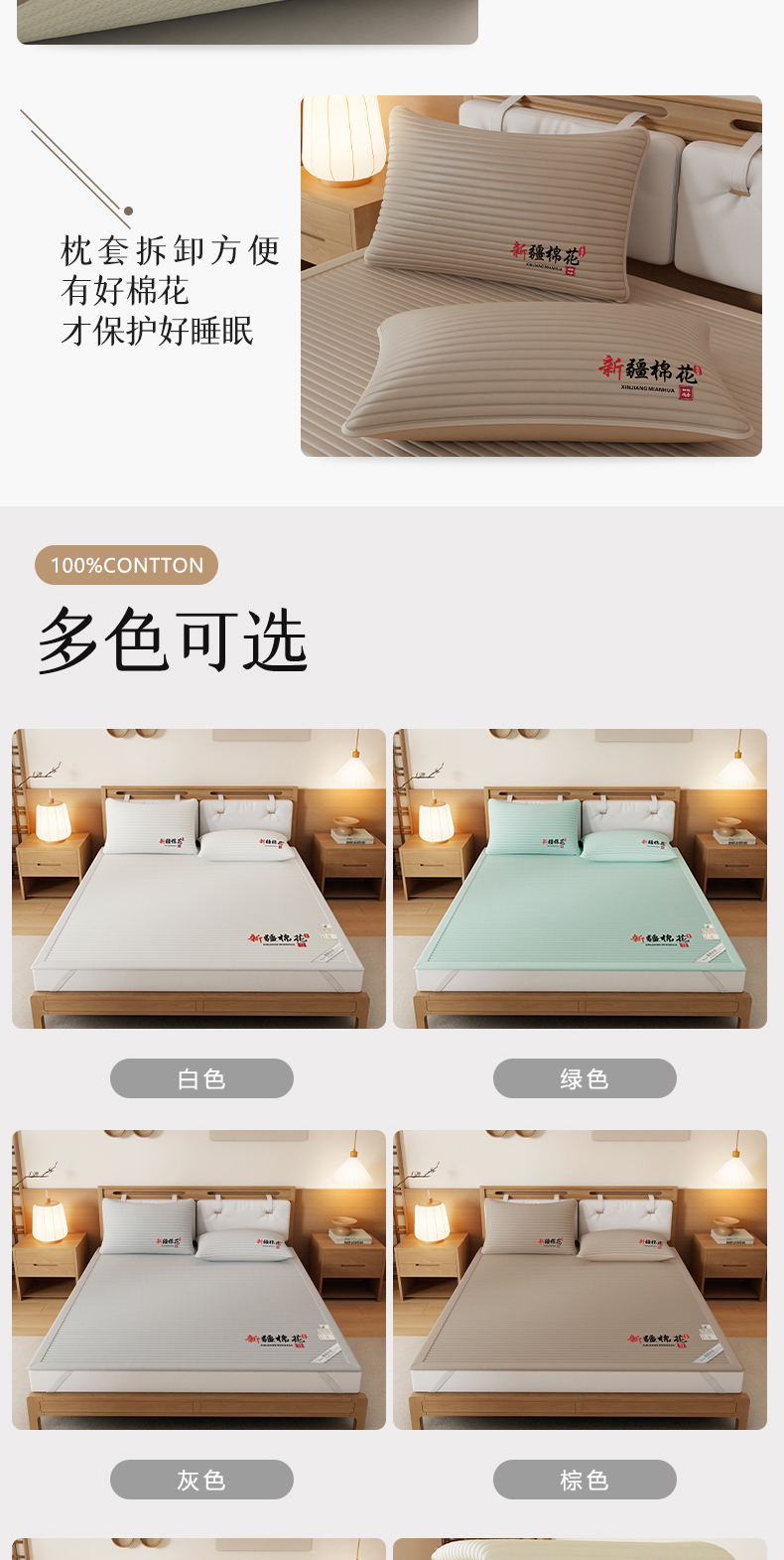 (总)缔莱(十三铭)被业 2025新款A类新疆水洗棉花床垫床护垫,新疆棉花软垫-白色,新疆棉花软垫-灰色,新疆棉花软垫-咖色,新疆棉花软垫-绿色,新疆棉花软垫-米色