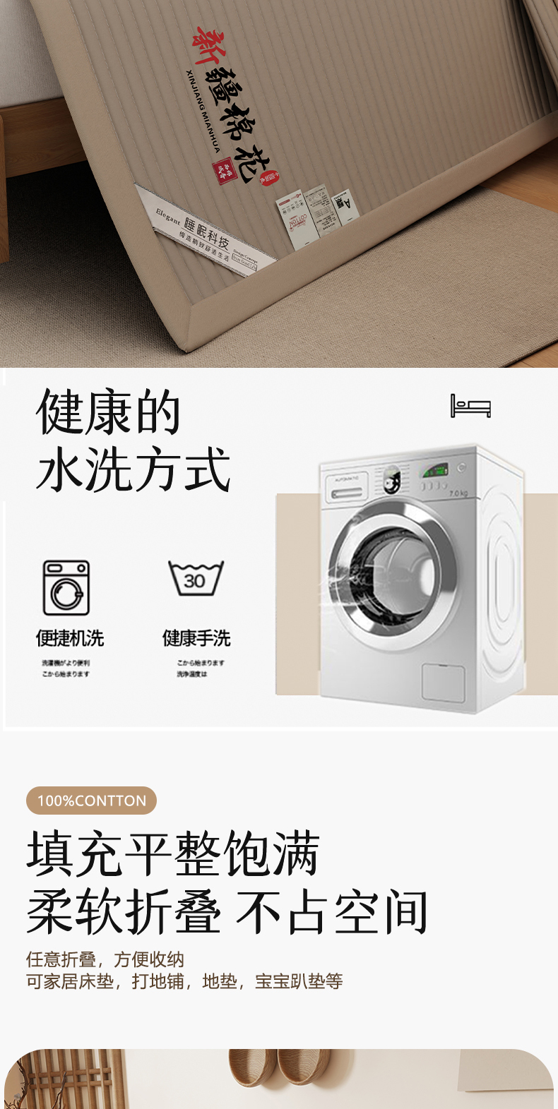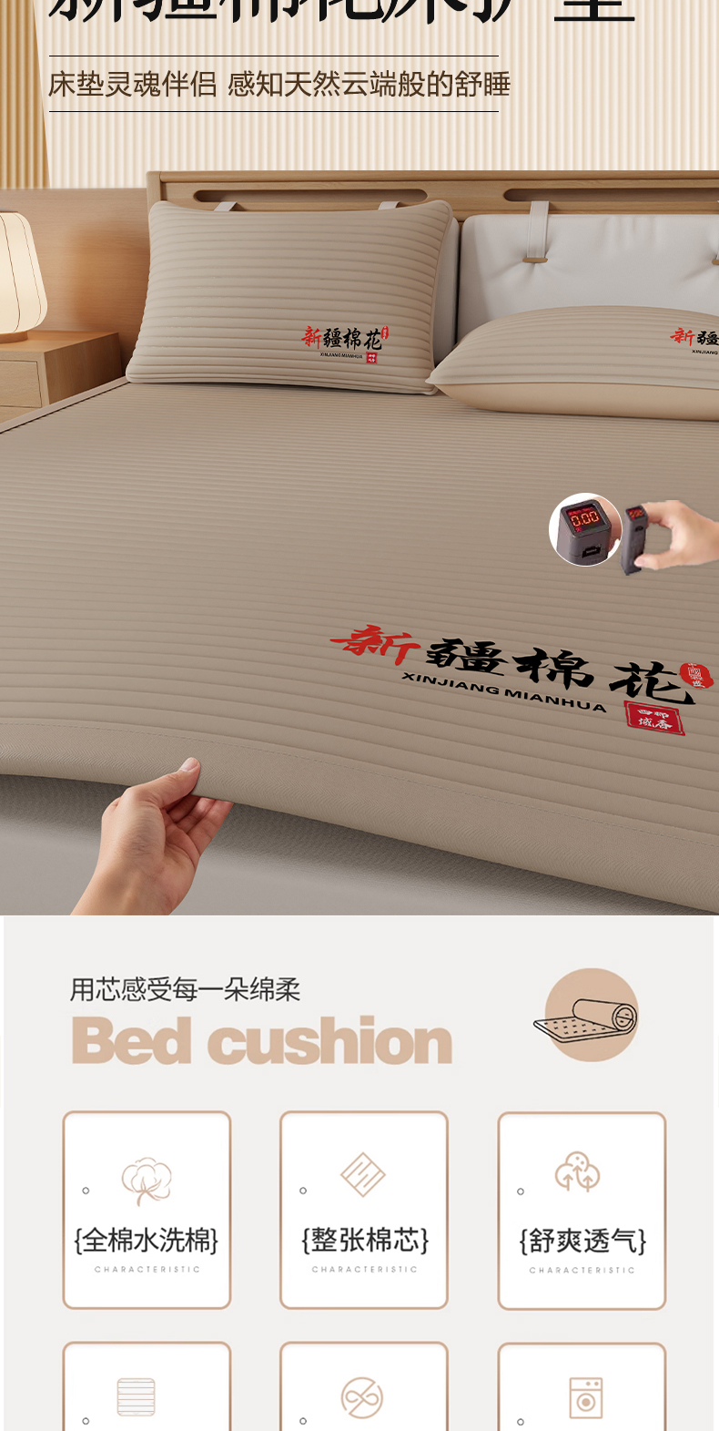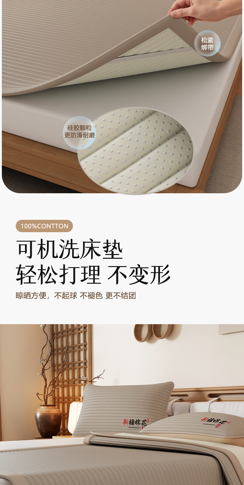 (总)缔莱(十三铭)被业 2025新款A类新疆水洗棉花床垫床护垫,新疆棉花软垫-白色,新疆棉花软垫-灰色,新疆棉花软垫-咖色,新疆棉花软垫-绿色,新疆棉花软垫-米色