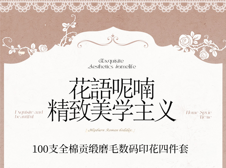 (总)寐居家纺 2025新款100支全棉纯棉贡缎磨毛数码印花工艺款四件套-花涧谣