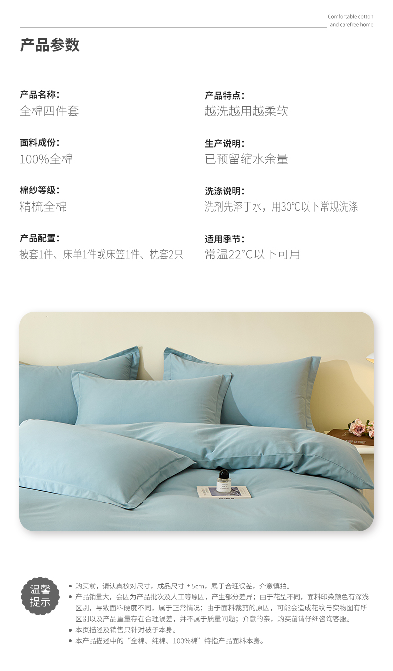 当前位置: 91家纺网 > 商品网购 > 床品套件 > 四件套 > 全棉普通四件套 > 元元家居(元元被业) 2025秋冬新款全棉纯棉磨毛纯色四件套 丹青