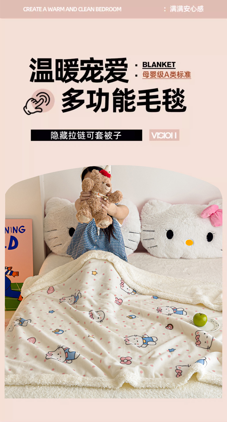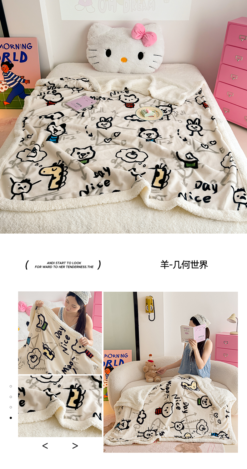 商品名称:艾特你 2025新款ins羊羔绒牛奶绒可被套休闲毯单被套-毯子图 爱心猫咪
