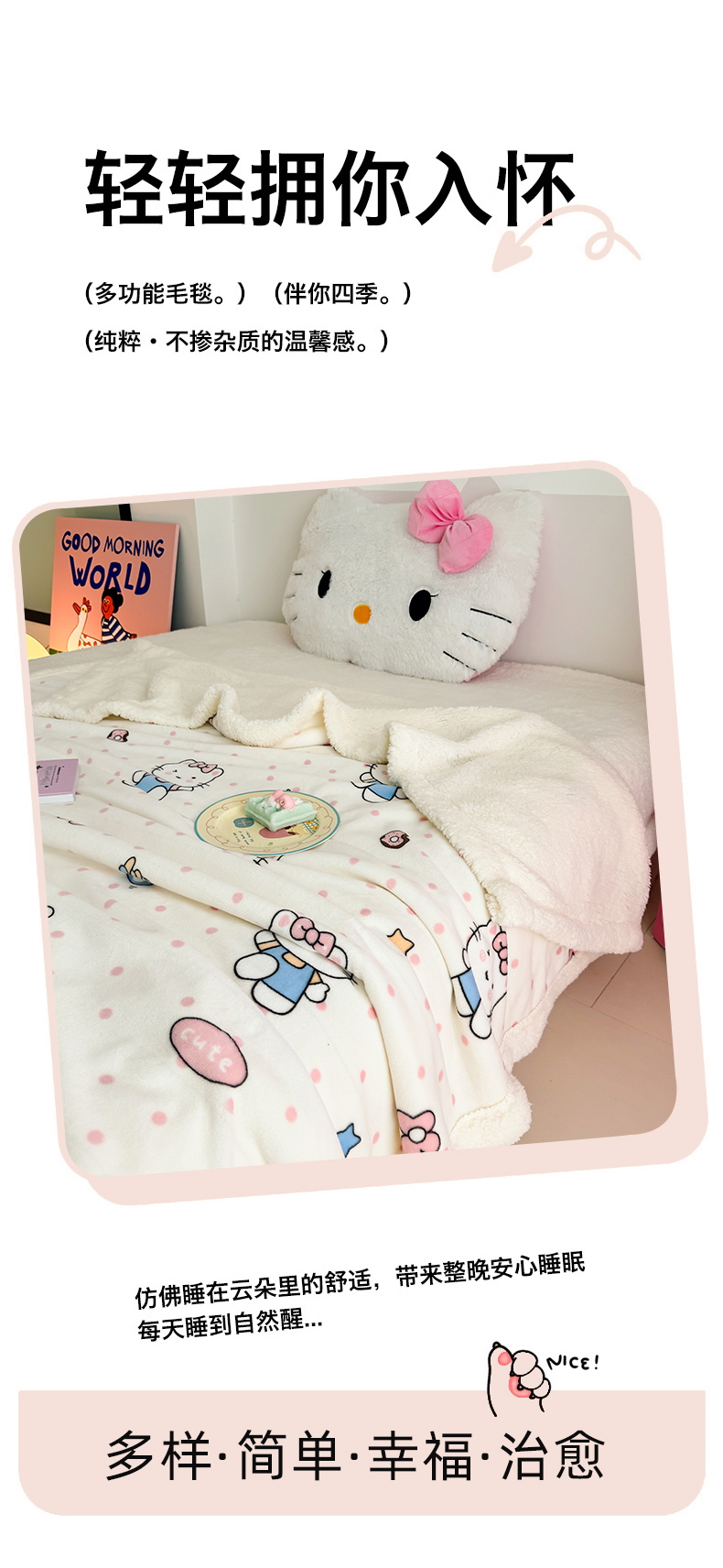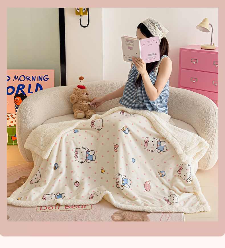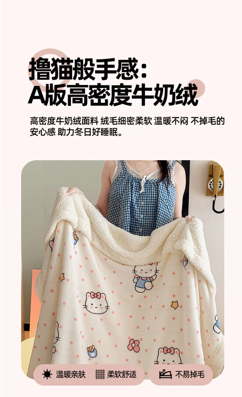 艾特你 2025新款ins羊羔绒牛奶绒可被套休闲毯单被套-毯子图 爱心猫咪