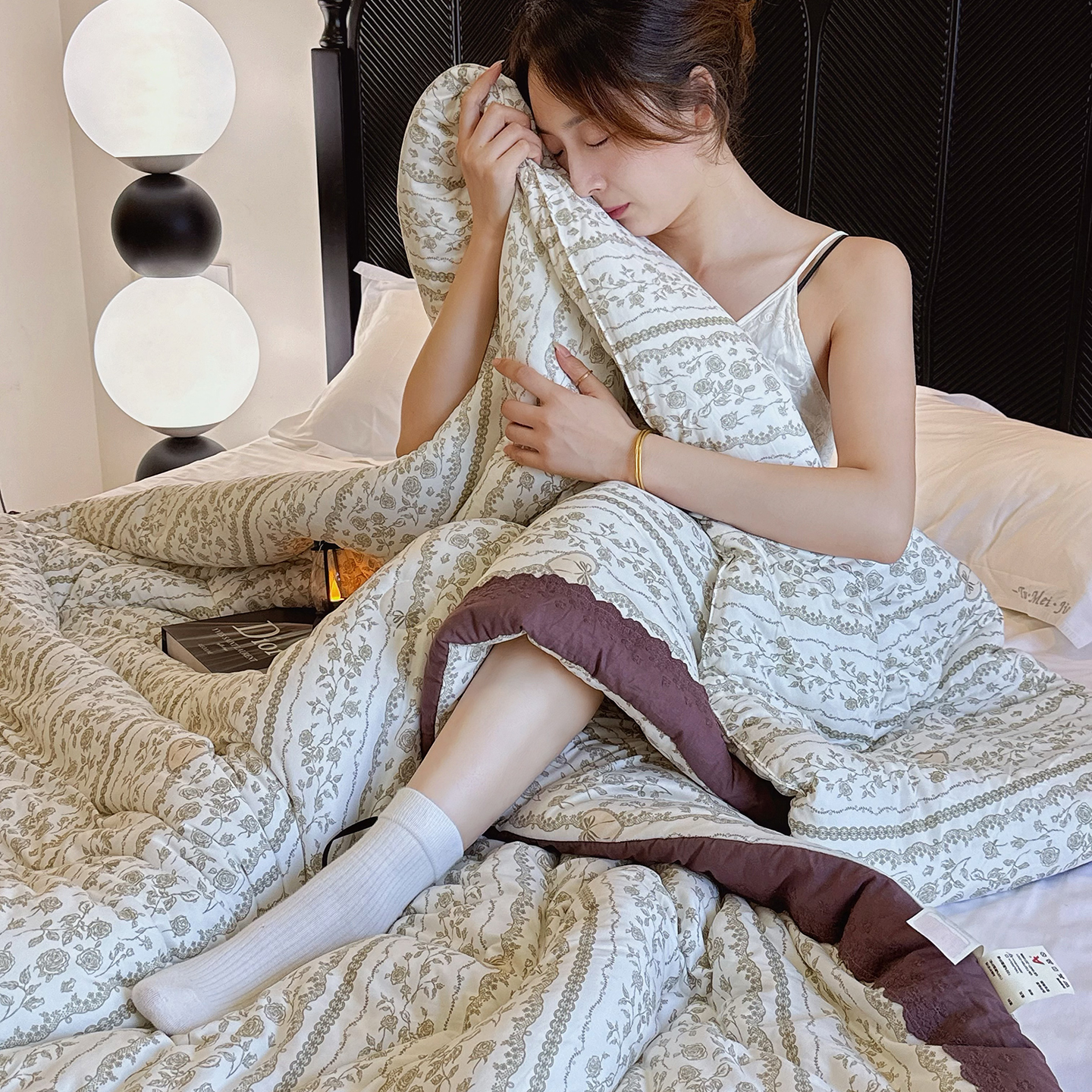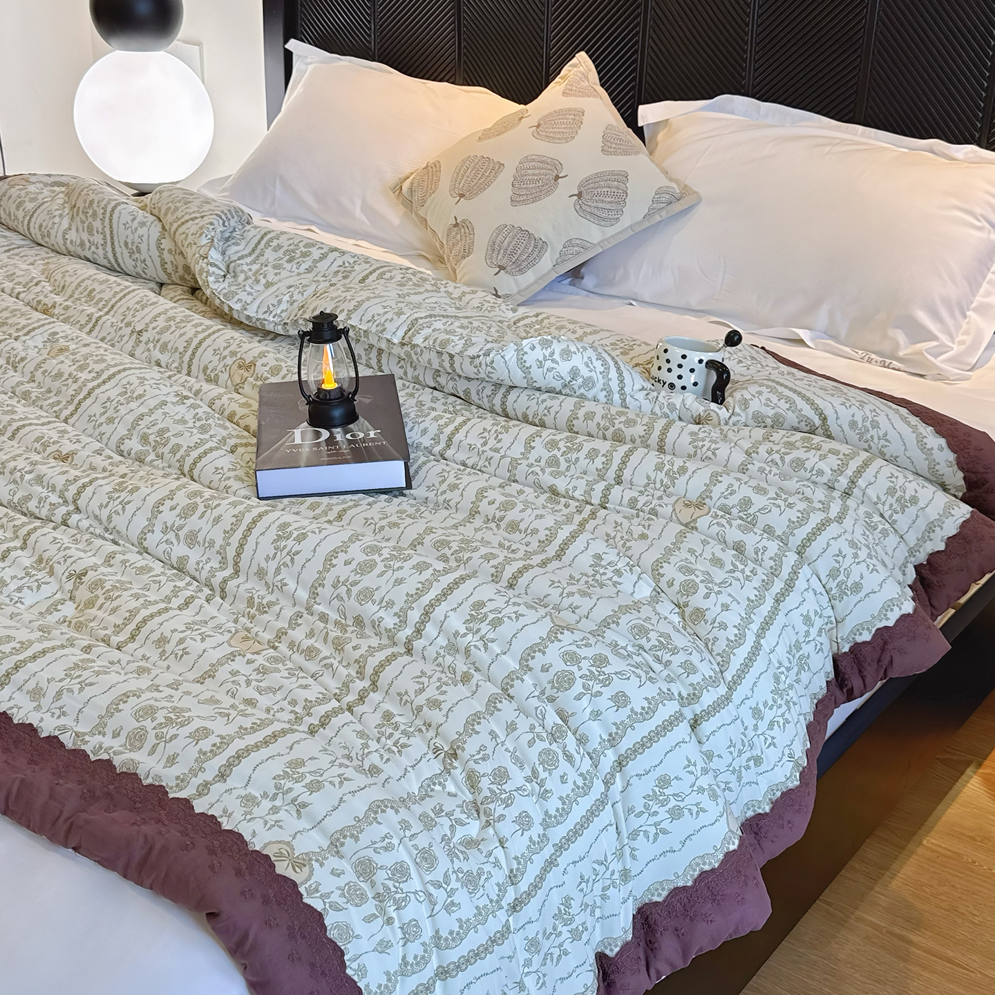 兜米家居 2025新款法式全棉花边针织春秋被四季被子被芯 玫瑰花语