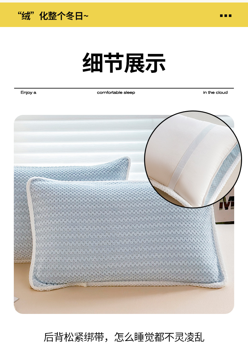 商品名称:翎盈家纺 2025新款云豆绒枕巾绑带款防滑枕巾 云豆绒-天蓝