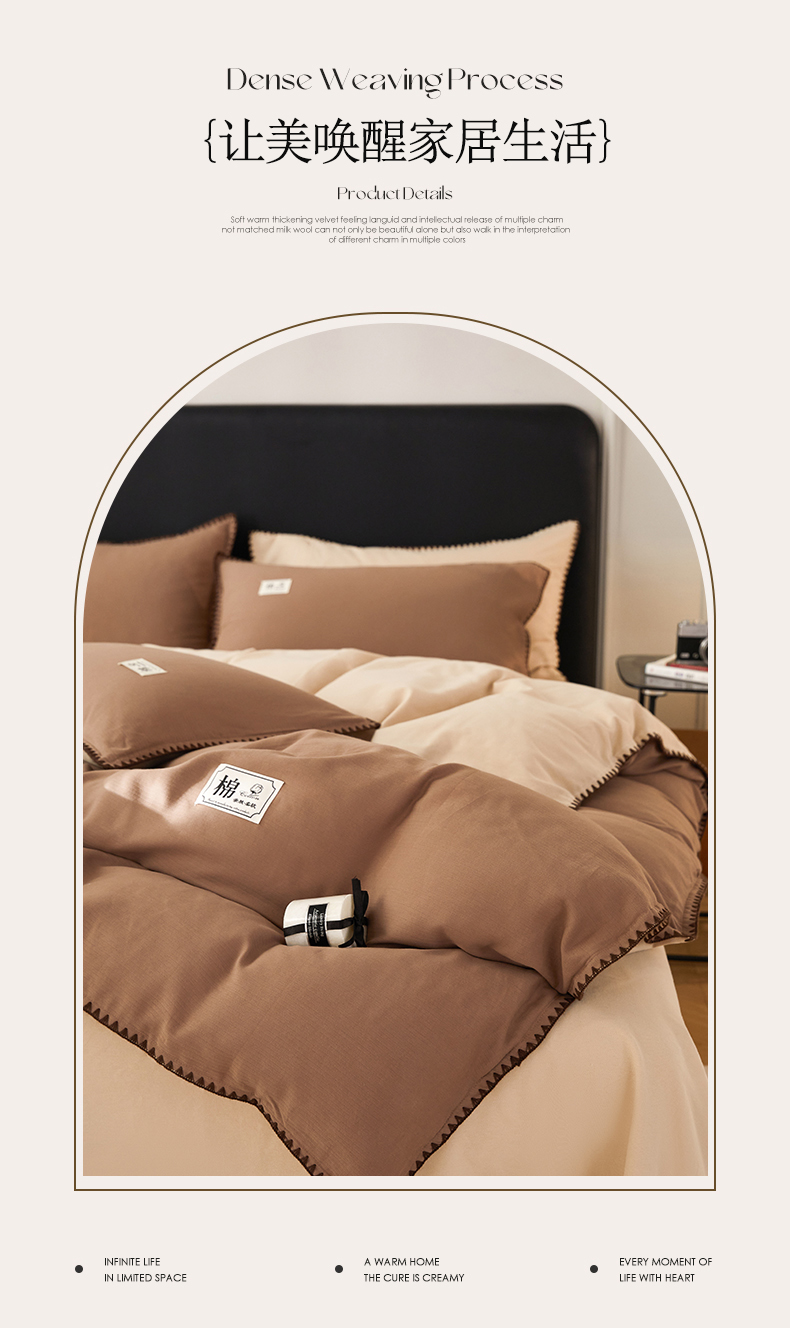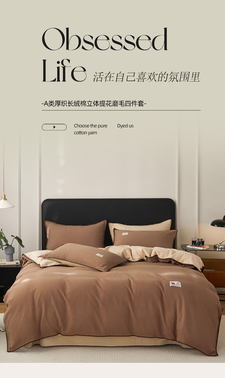 (总)女子家纺 2025新款全棉A类厚织长绒棉立体提花磨毛贝壳边四件套