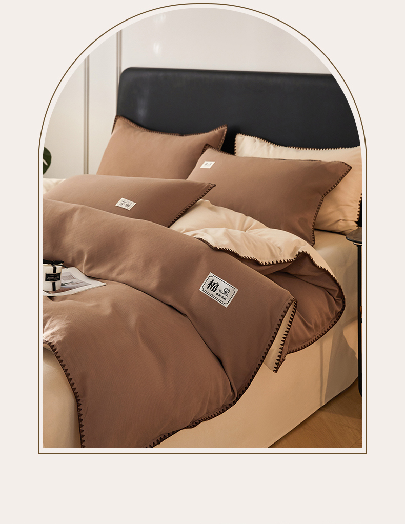 商品名称:(总)女子家纺 2025新款全棉A类厚织长绒棉立体提花磨毛贝壳边四件套