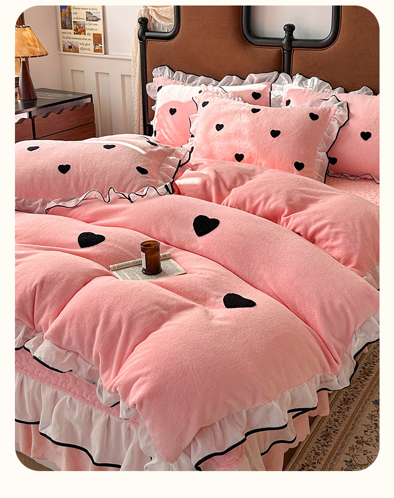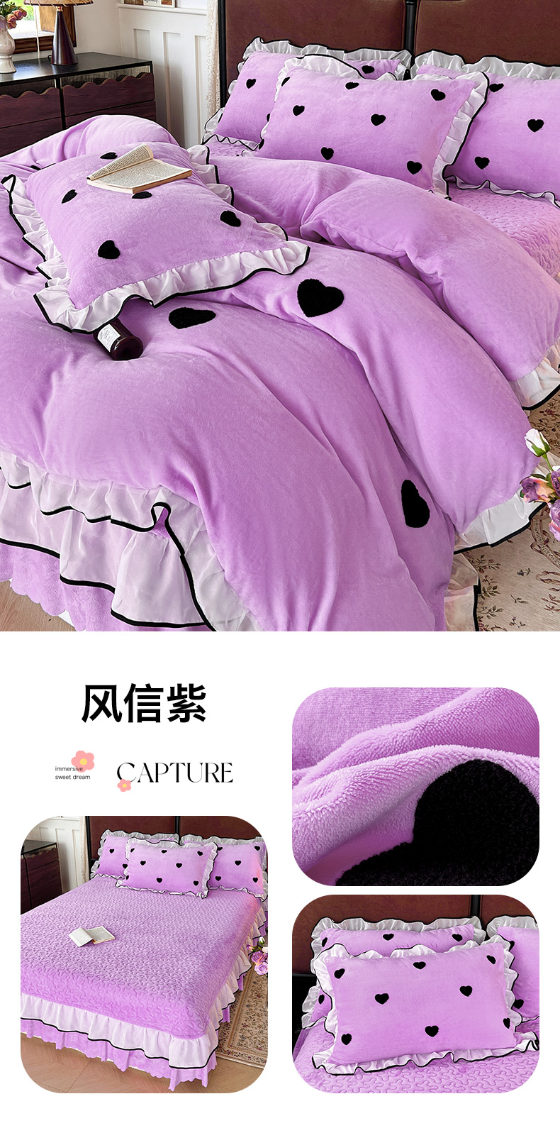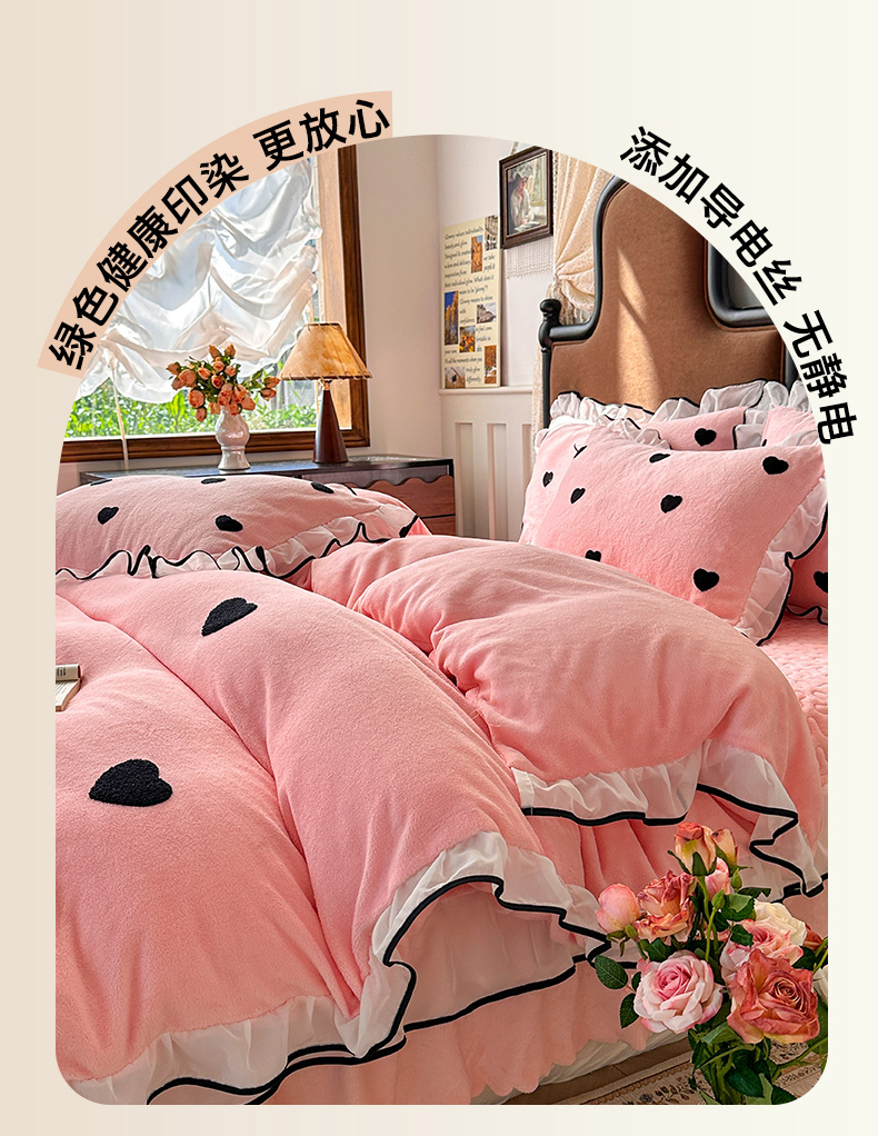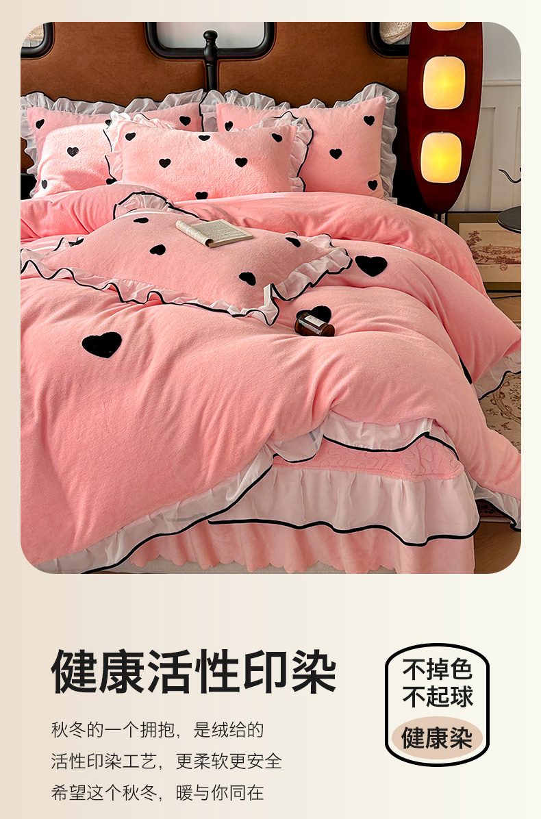 当前位置: 91家纺网 > 商品网购 > 床品套件 > 四件套 > 牛奶绒四件套 > 梦柏家纺 2025新款韩式牛奶绒刺绣花边床盖四件套 樱花粉
