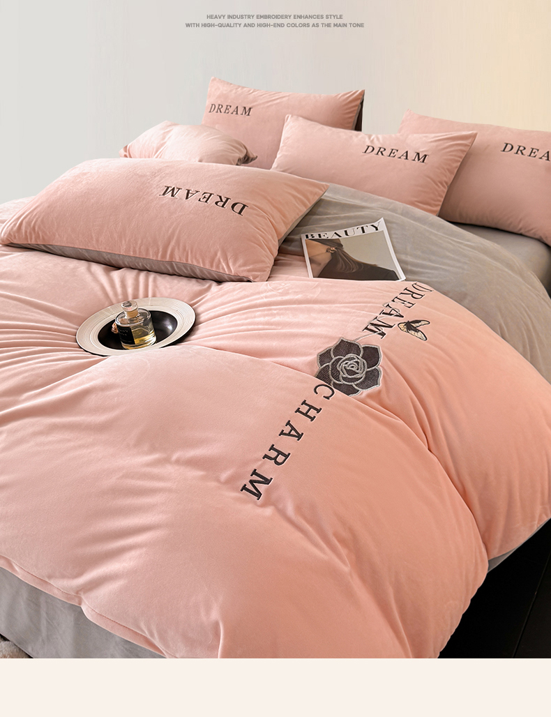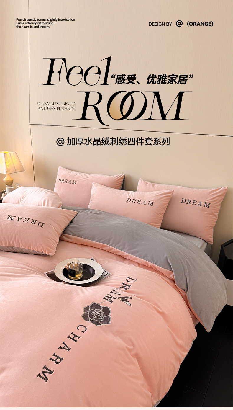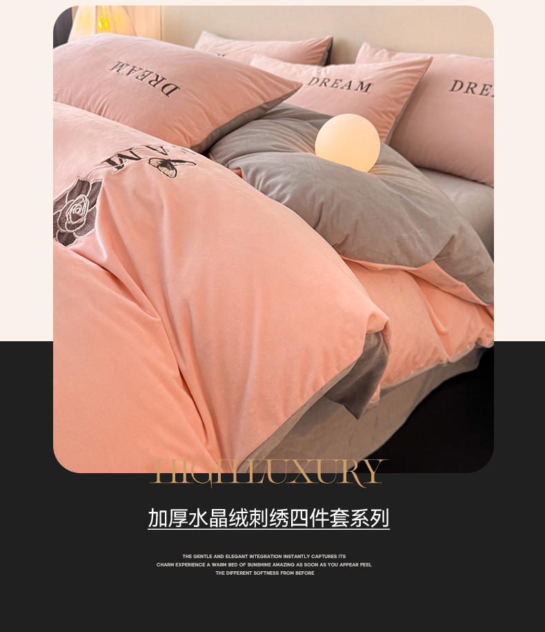 当前位置: 91家纺网 > 商品网购 > 床品套件 > 四件套 > 水晶绒四件套 > 云棉坊 2025新款水晶绒刺绣四件套-初见 初见-蜜桃粉