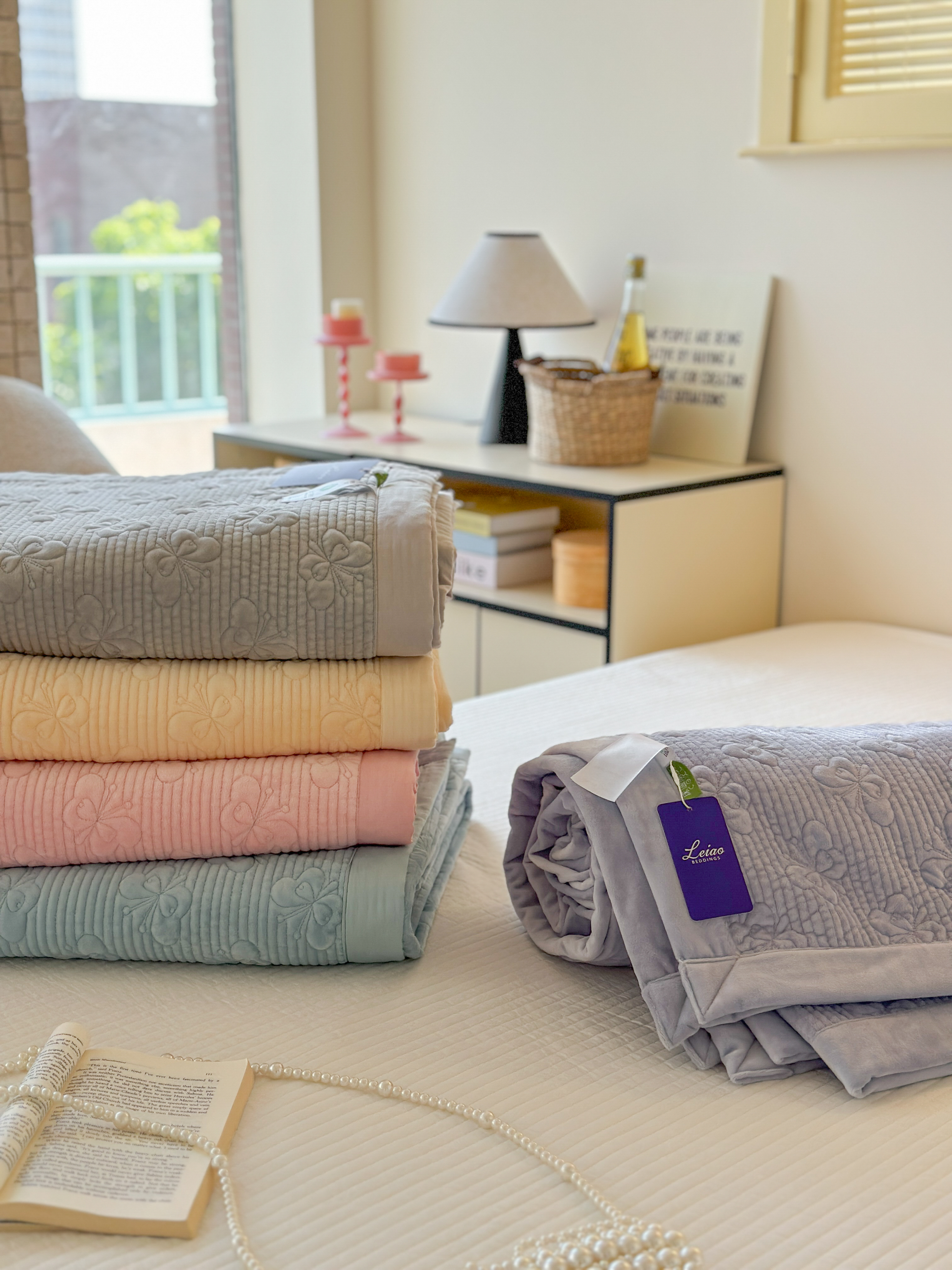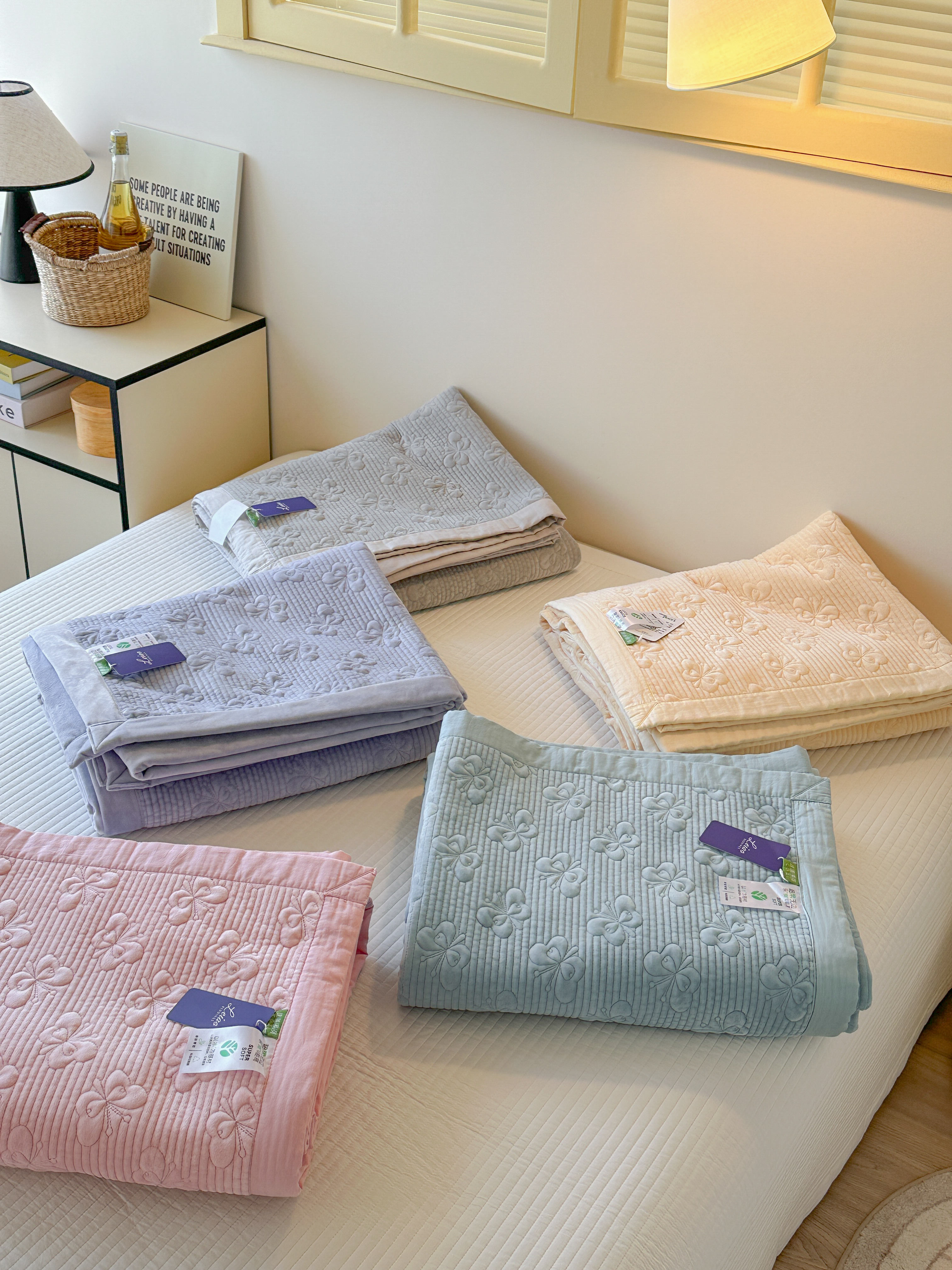 (总)琳可家居 2026新款60S长绒棉花边床盖A类双面全棉高温水洗-蝶恋系列,蝶恋-暖白,蝶恋-卡其,蝶恋-雾粉,组合