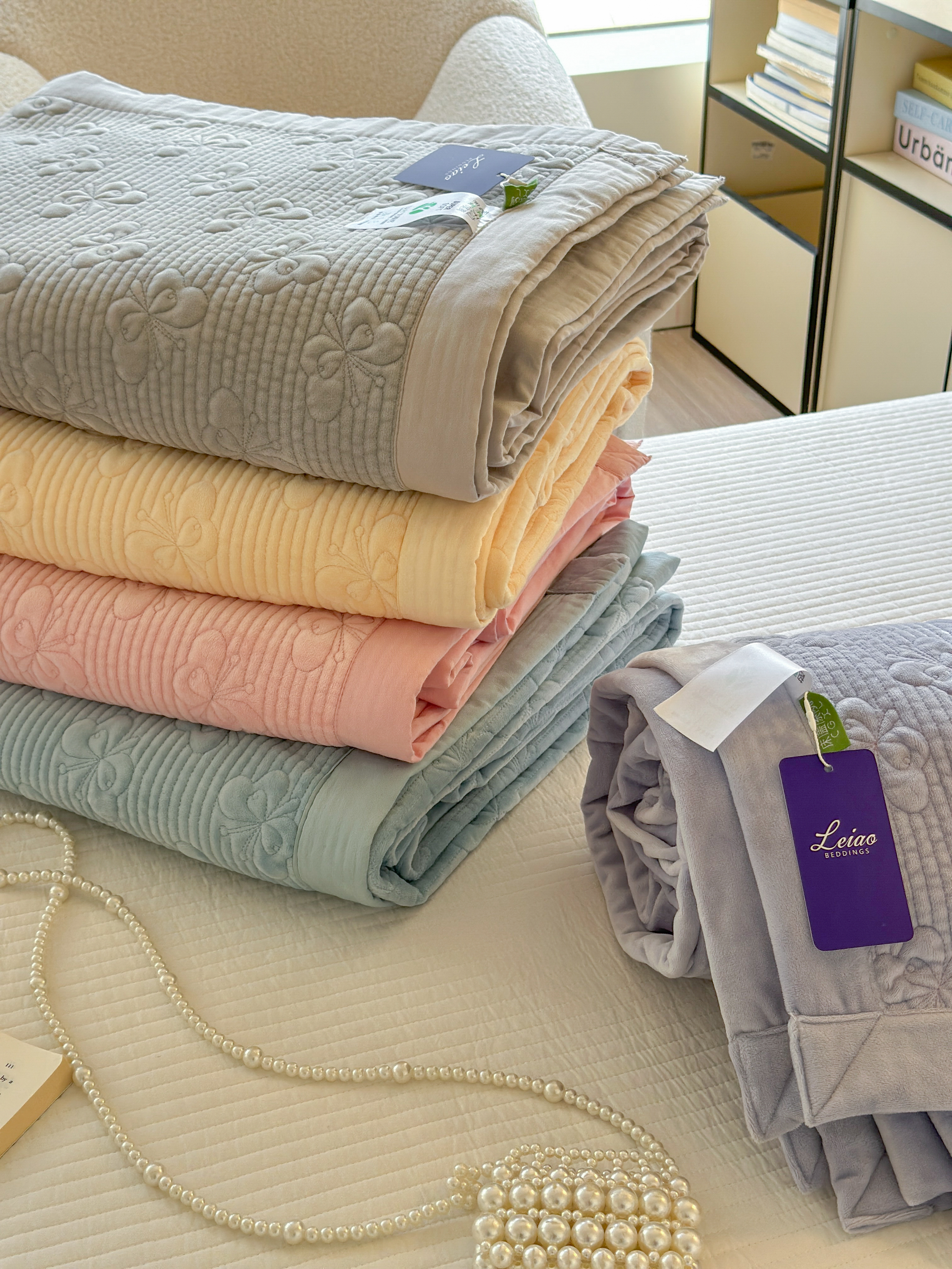 琳可家居 2025新款蝴蝶系列棉加绒床盖 组合