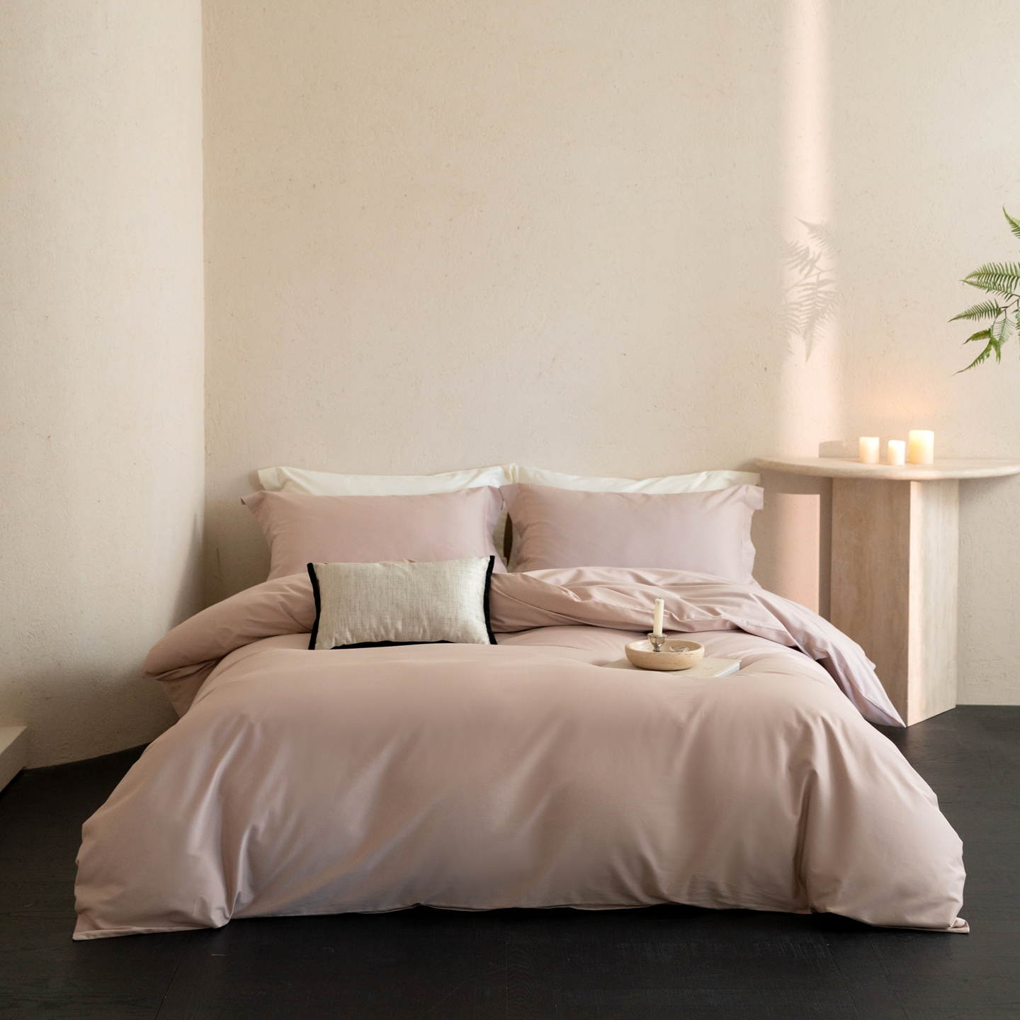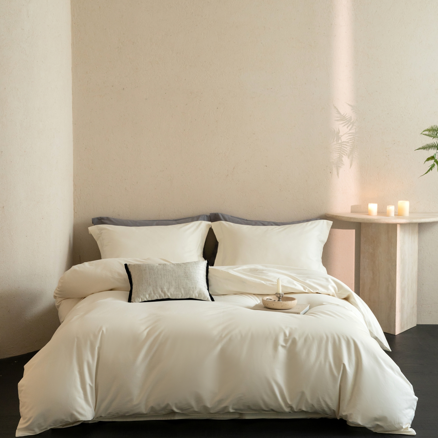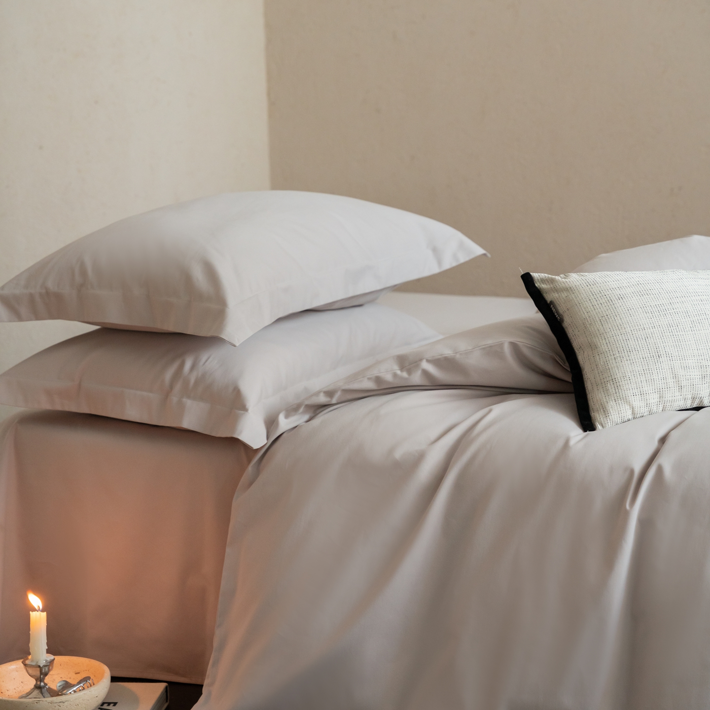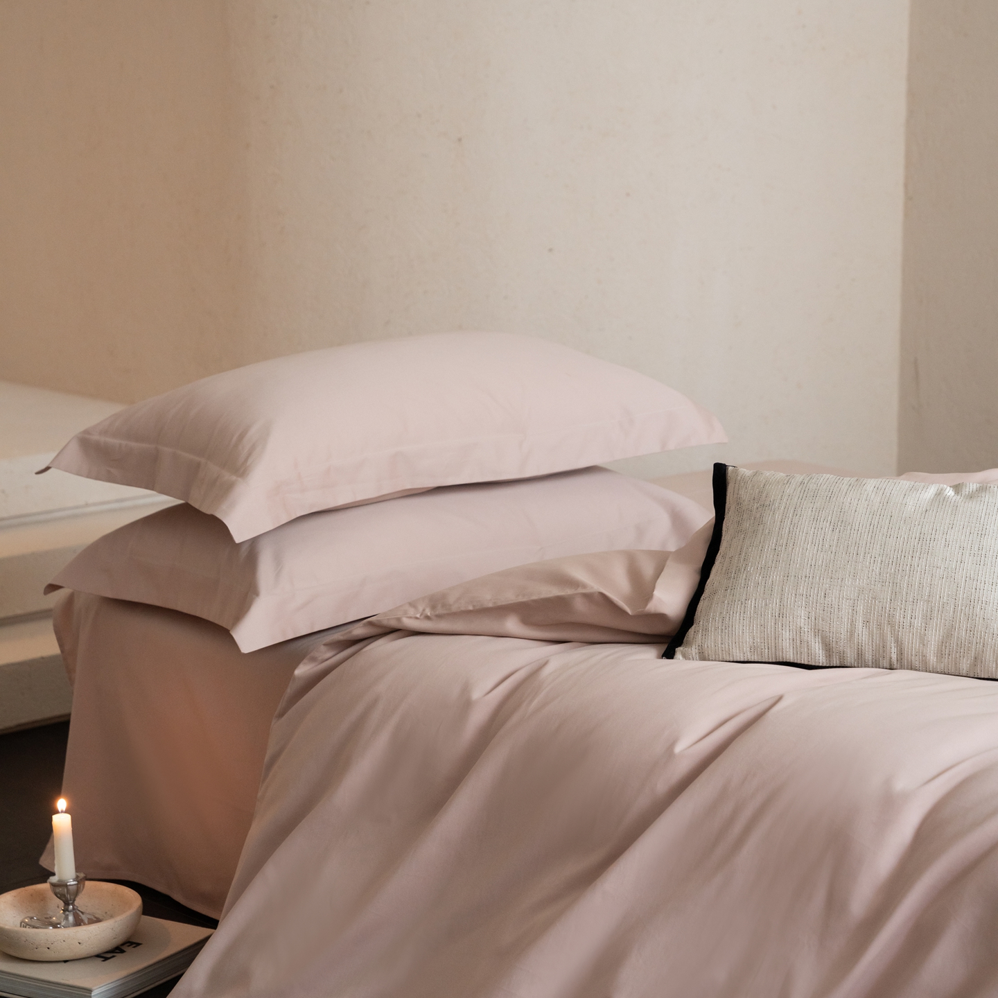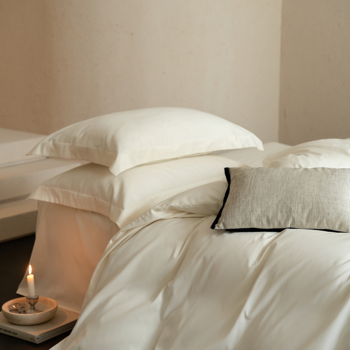 ONE TWO ONE 121 2025宽边枕陶瓷一字绣磨毛四件套(会员:-10元) 凌波白