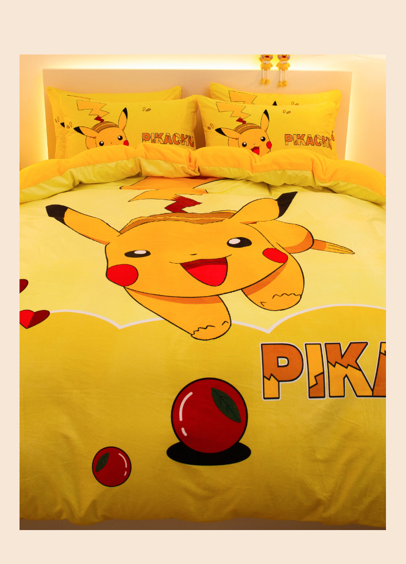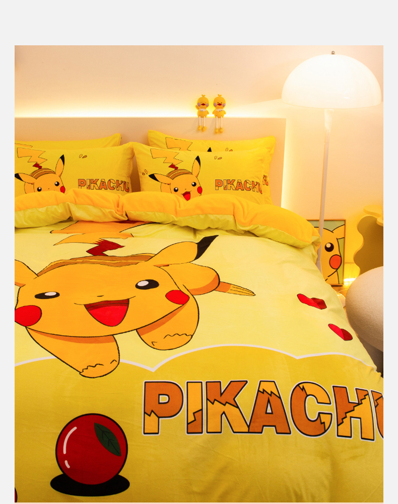 一电 2025外贸跨境电商儿童卡通床上四件套亲肤牛奶绒学生三件床单被套加大珊瑚宝宝卡通 奔跑皮卡丘
