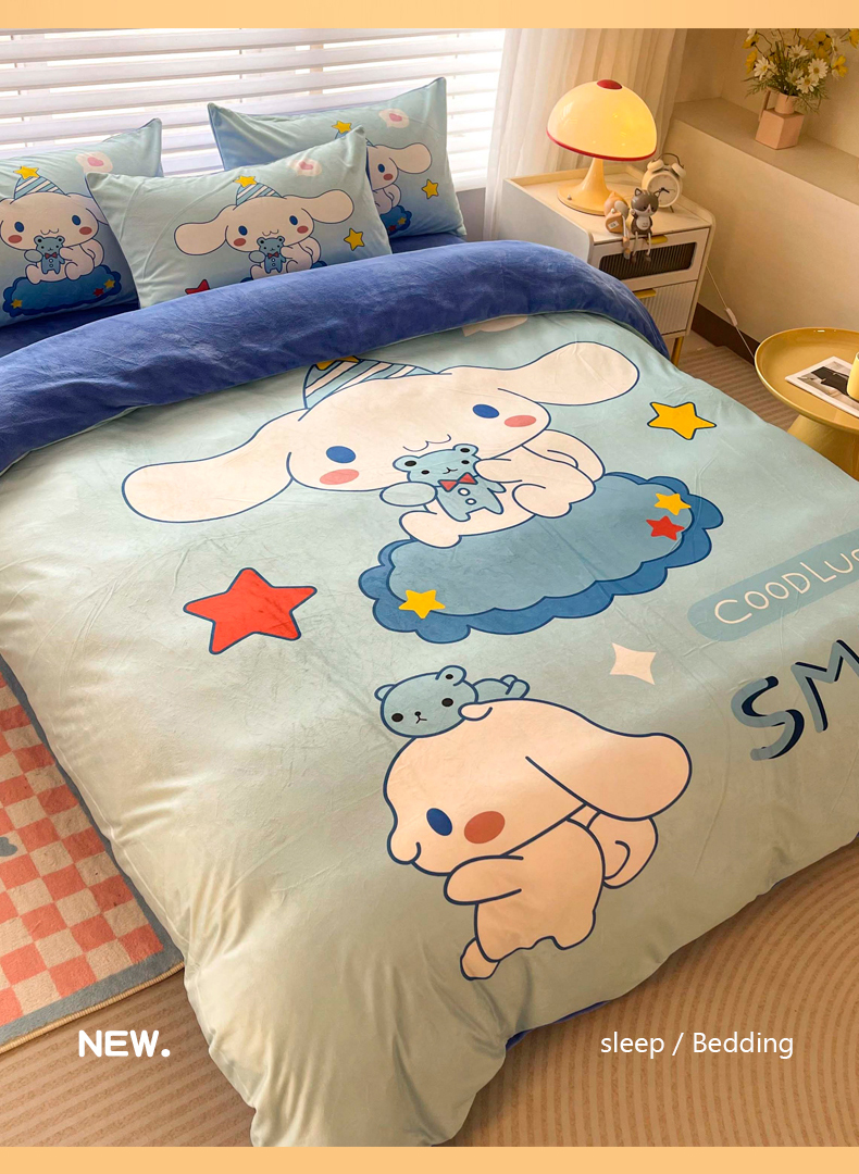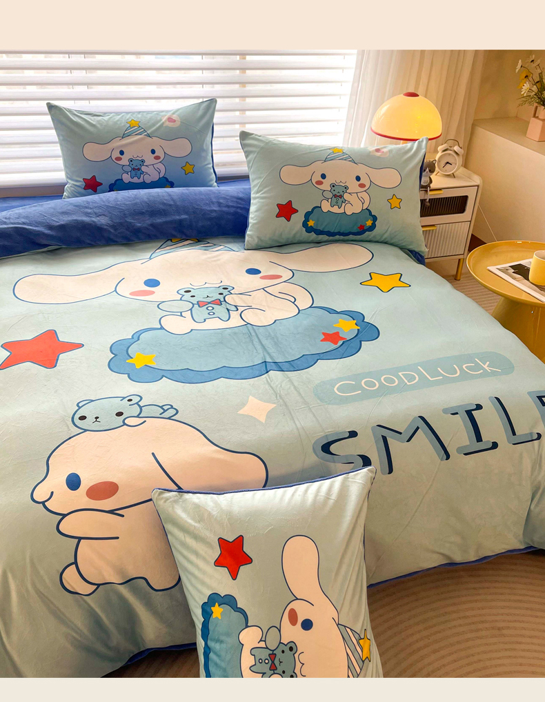 (总)一电 2025新款冬季双面牛奶珊瑚绒床上四件套法兰绒床品加绒被套床单三件套-第三批,公主库洛米,天使库洛米,甜筒库洛米,小兔子,圆点库洛米