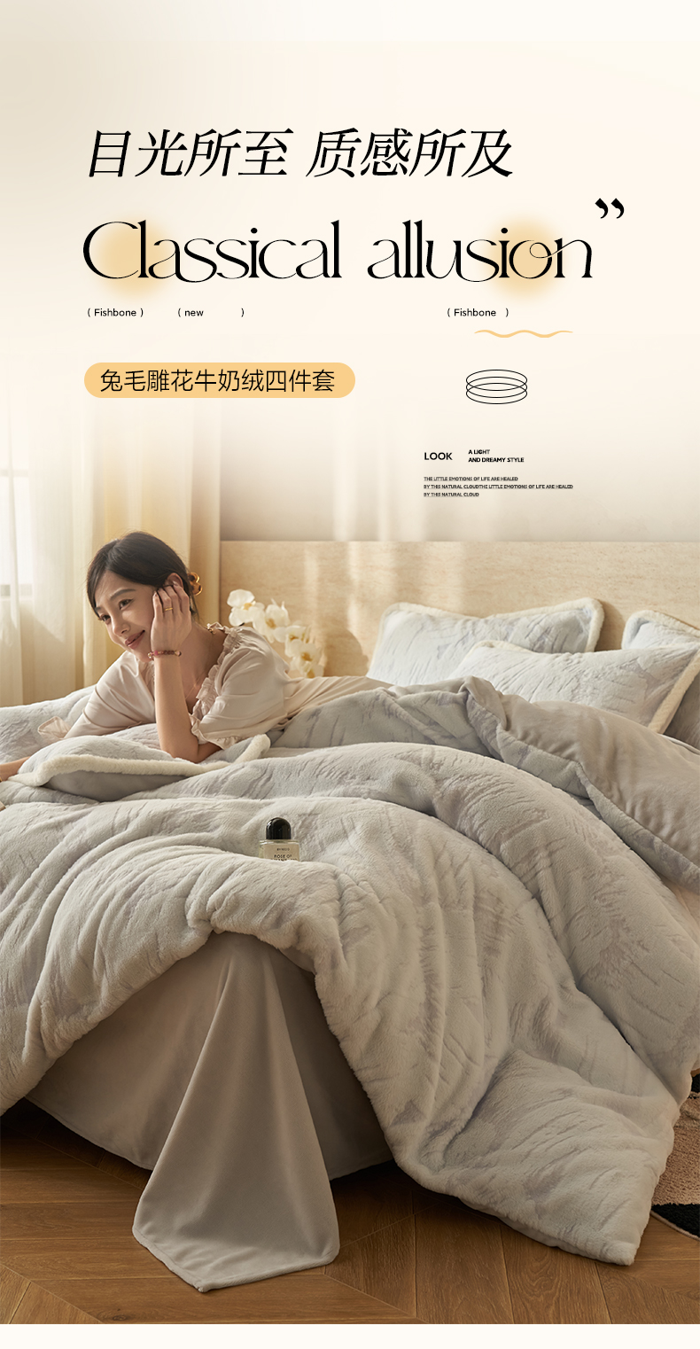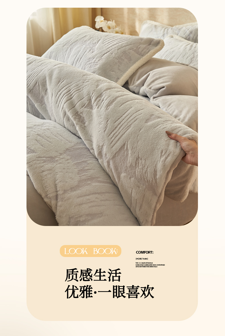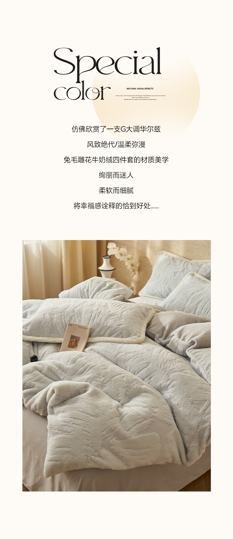 当前位置: 91家纺网 > 商品网购 > 床品套件 > 四件套 > 雕花绒四件套 > 寐绸家纺 2025秋冬新款350g兔毛雕花牛奶绒四件套 炫彩-灰