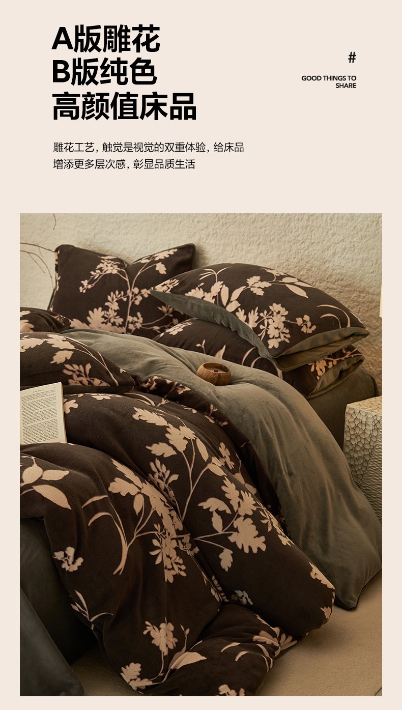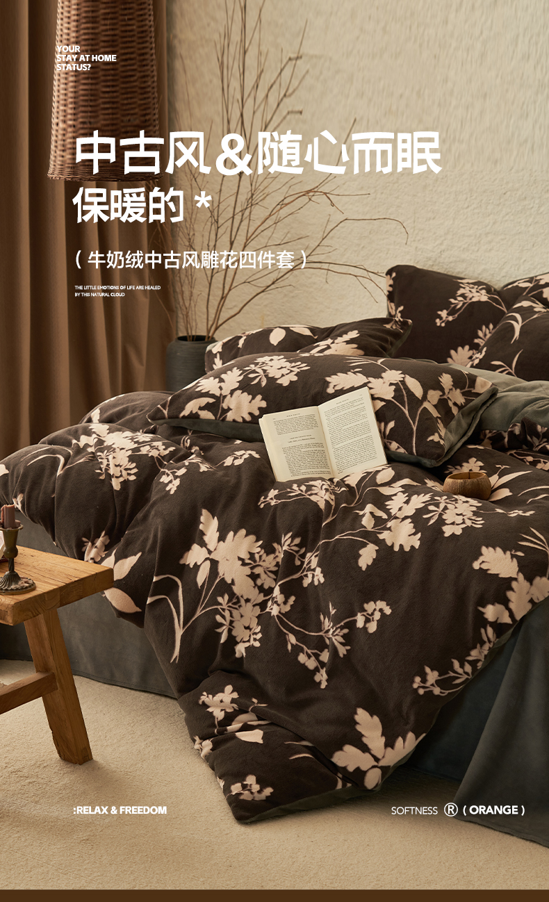 当前位置: 91家纺网 > 商品网购 > 床品套件 > 四件套 > 雕花绒四件套 > 寐绸家纺 2025秋冬新款230g中古风牛奶绒雕花四件套 中古-洛洛繁华