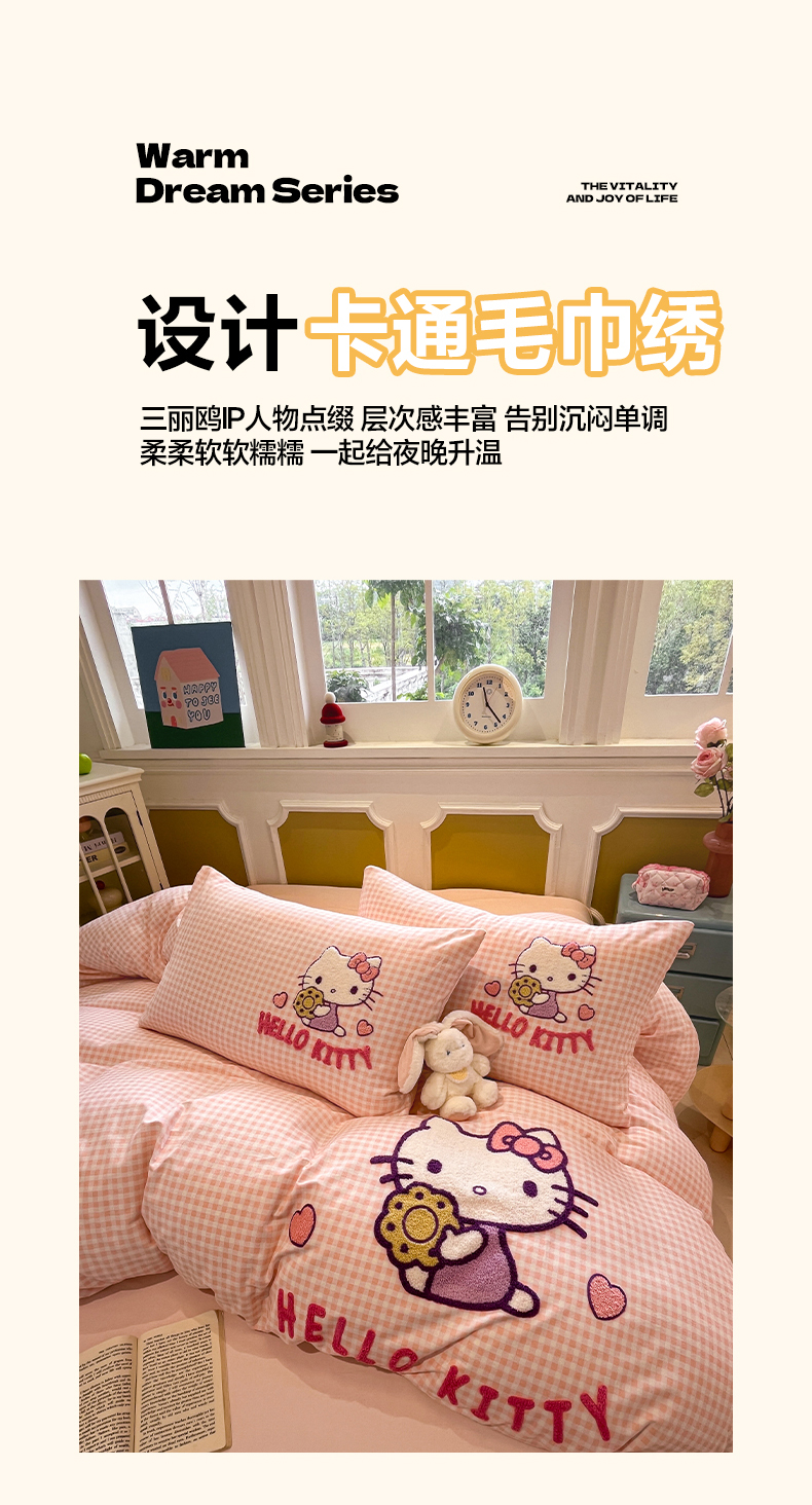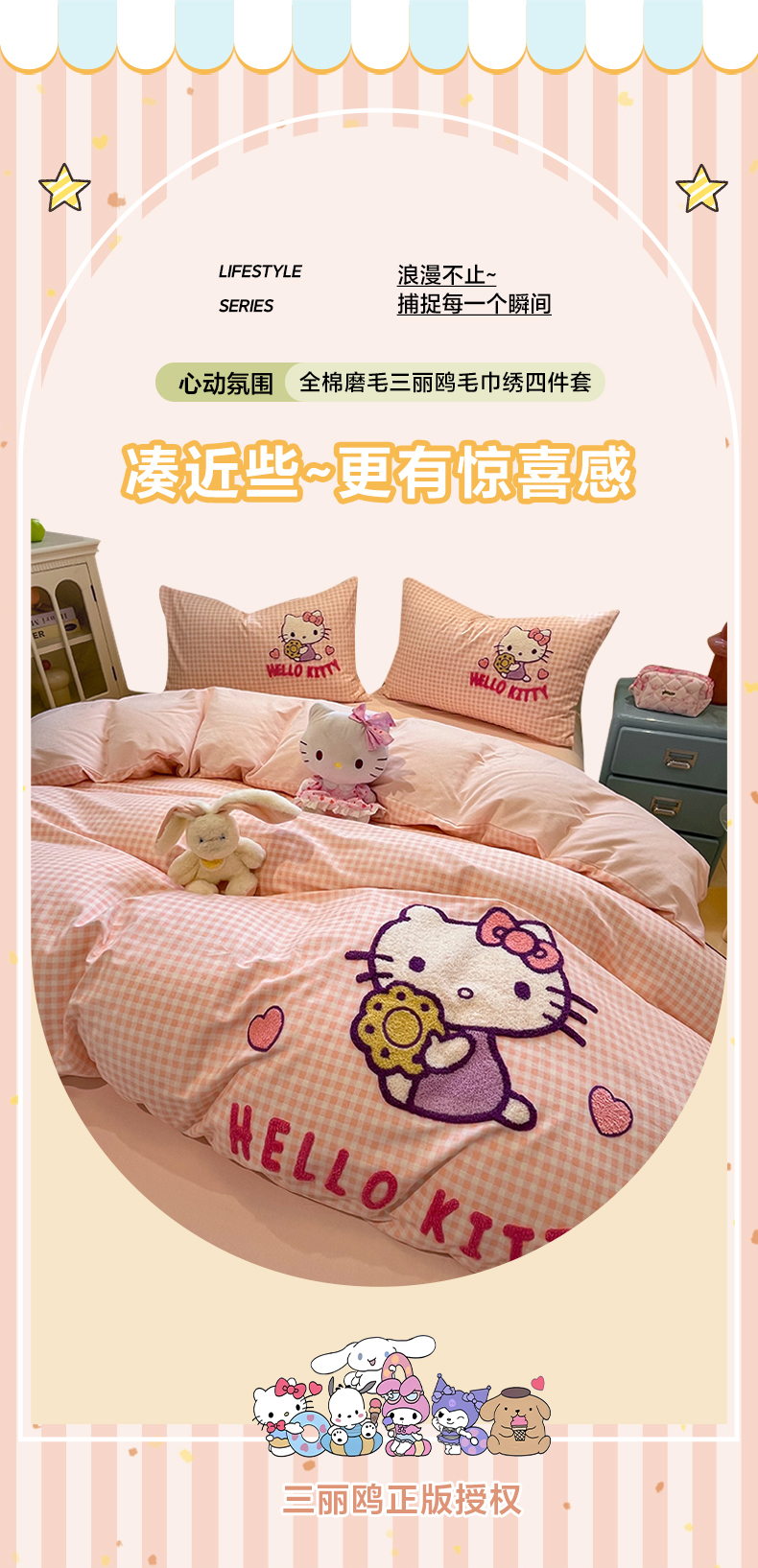 商品名称:(总)蓝邻家纺 2025新款全棉磨毛三丽鸥毛巾绣四件套系列