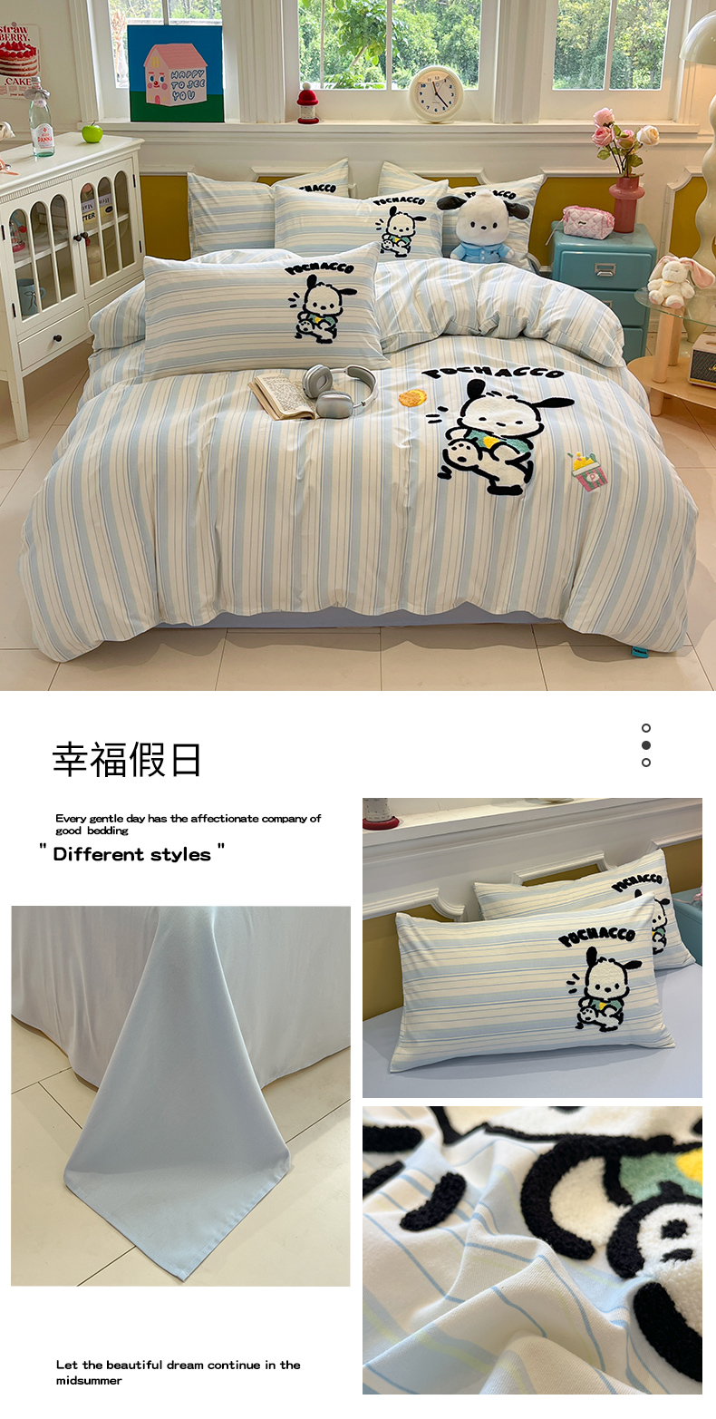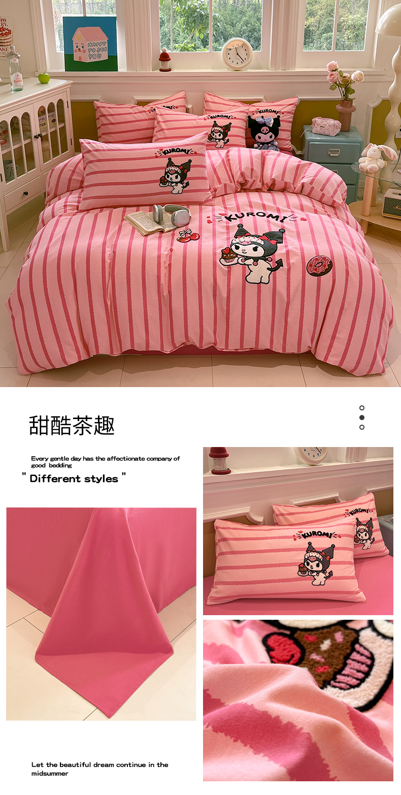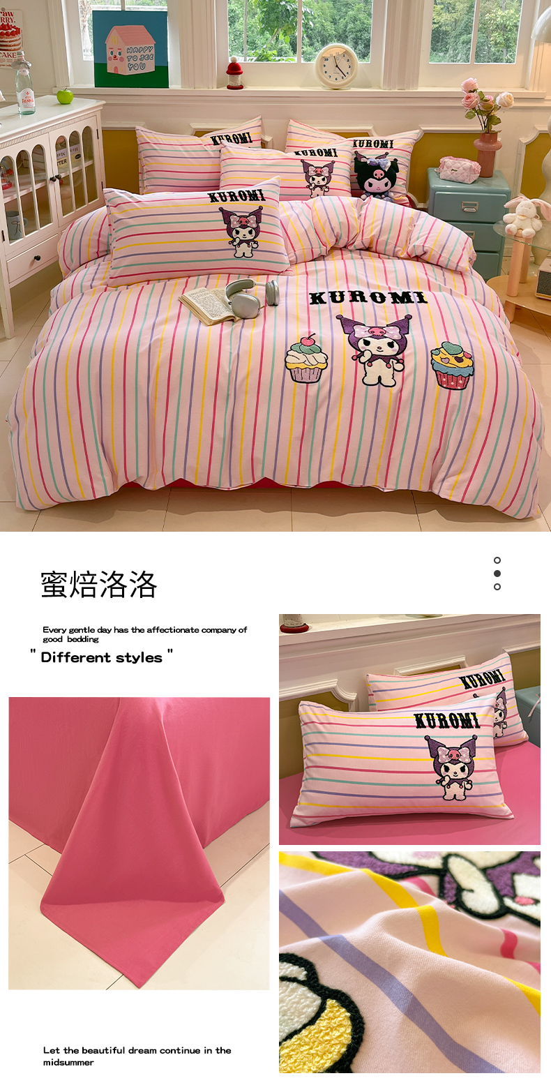 (总)蓝邻家纺 2024新款三丽鸥正版授权学生宿舍全棉印花四件套,甜甜库洛米,粉格美乐蒂,米酷粉,米酷紫,妙可乐园,牛奶大耳狗,玉桂狗