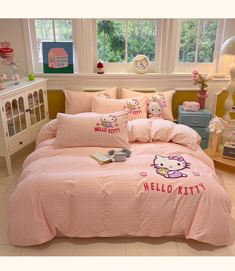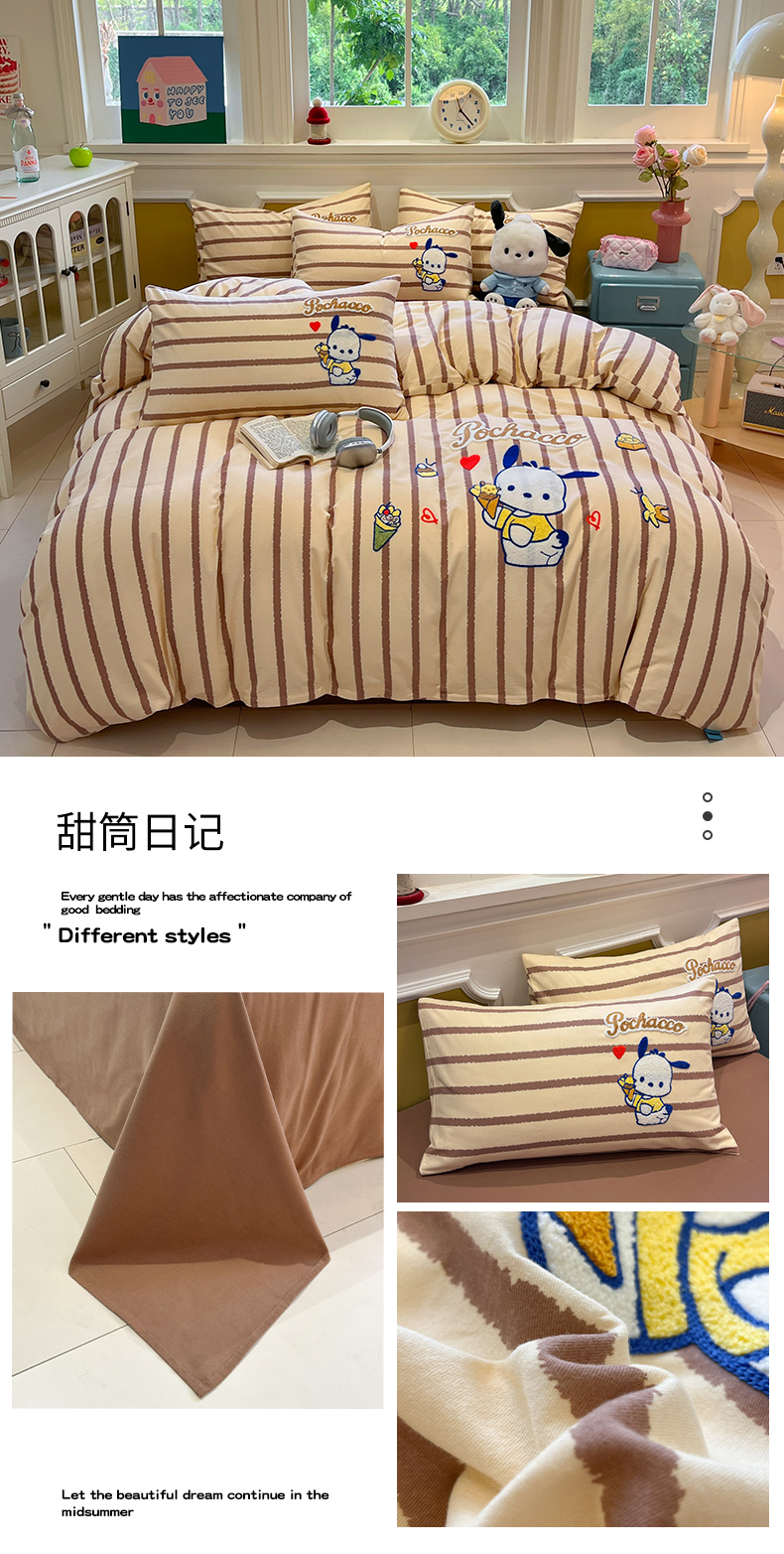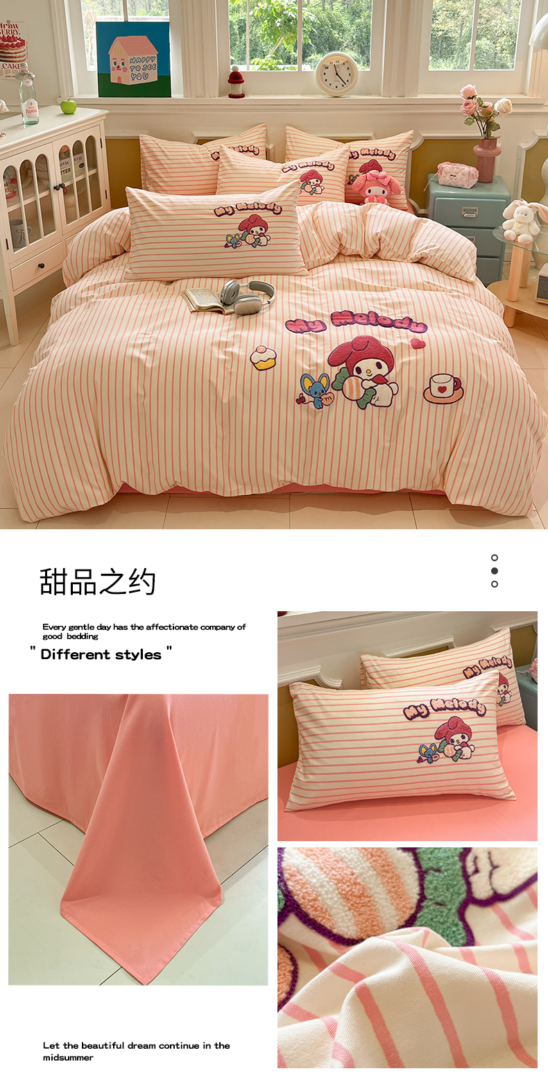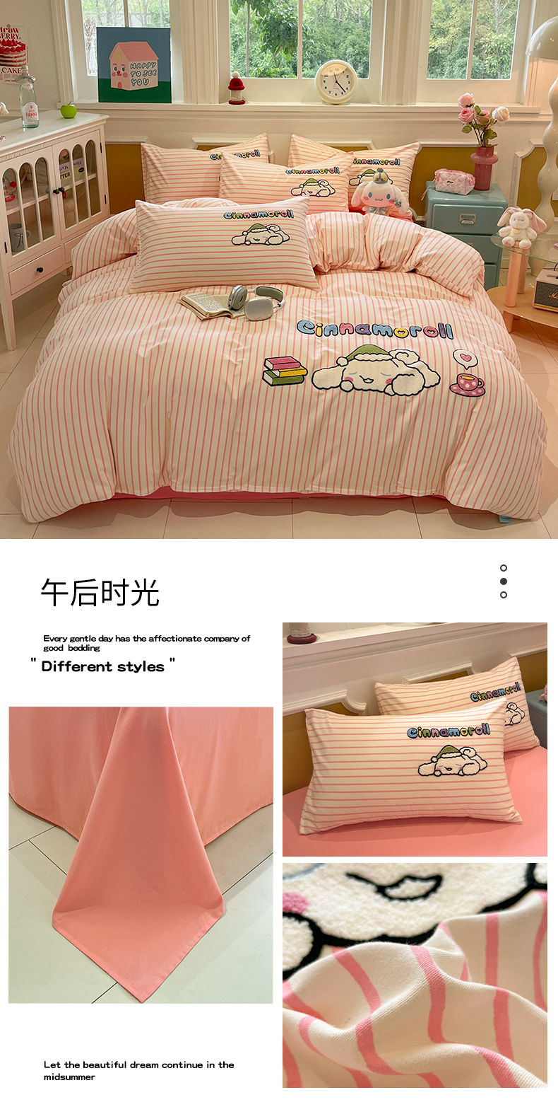 (总)蓝邻家纺 2024新款三丽鸥正版授权学生宿舍全棉印花四件套,甜甜库洛米,粉格美乐蒂,米酷粉,米酷紫,妙可乐园,牛奶大耳狗,玉桂狗