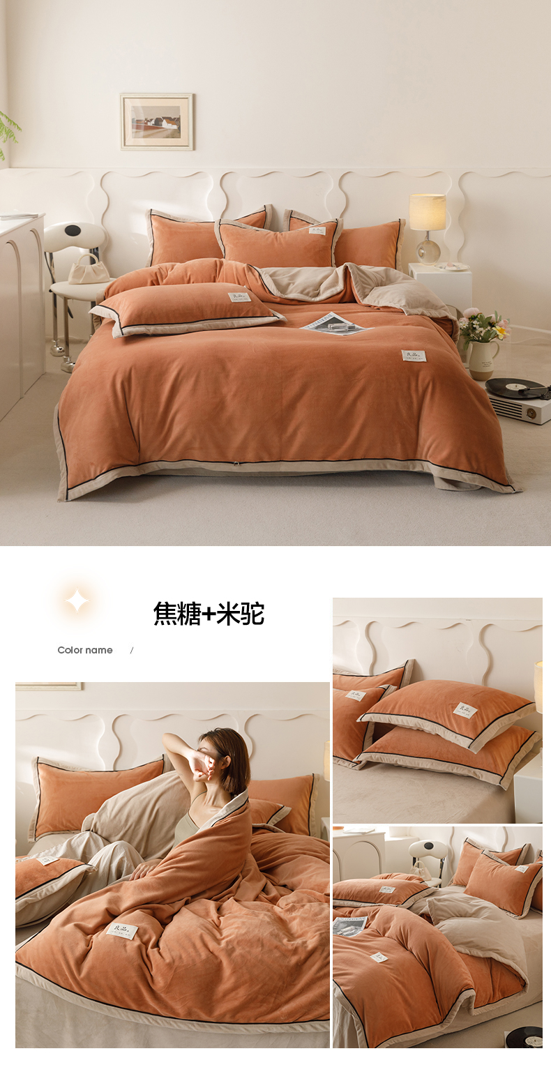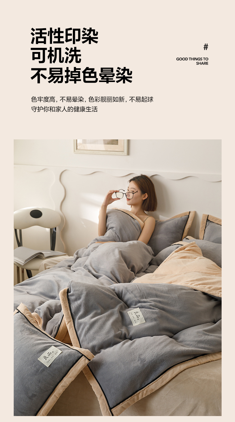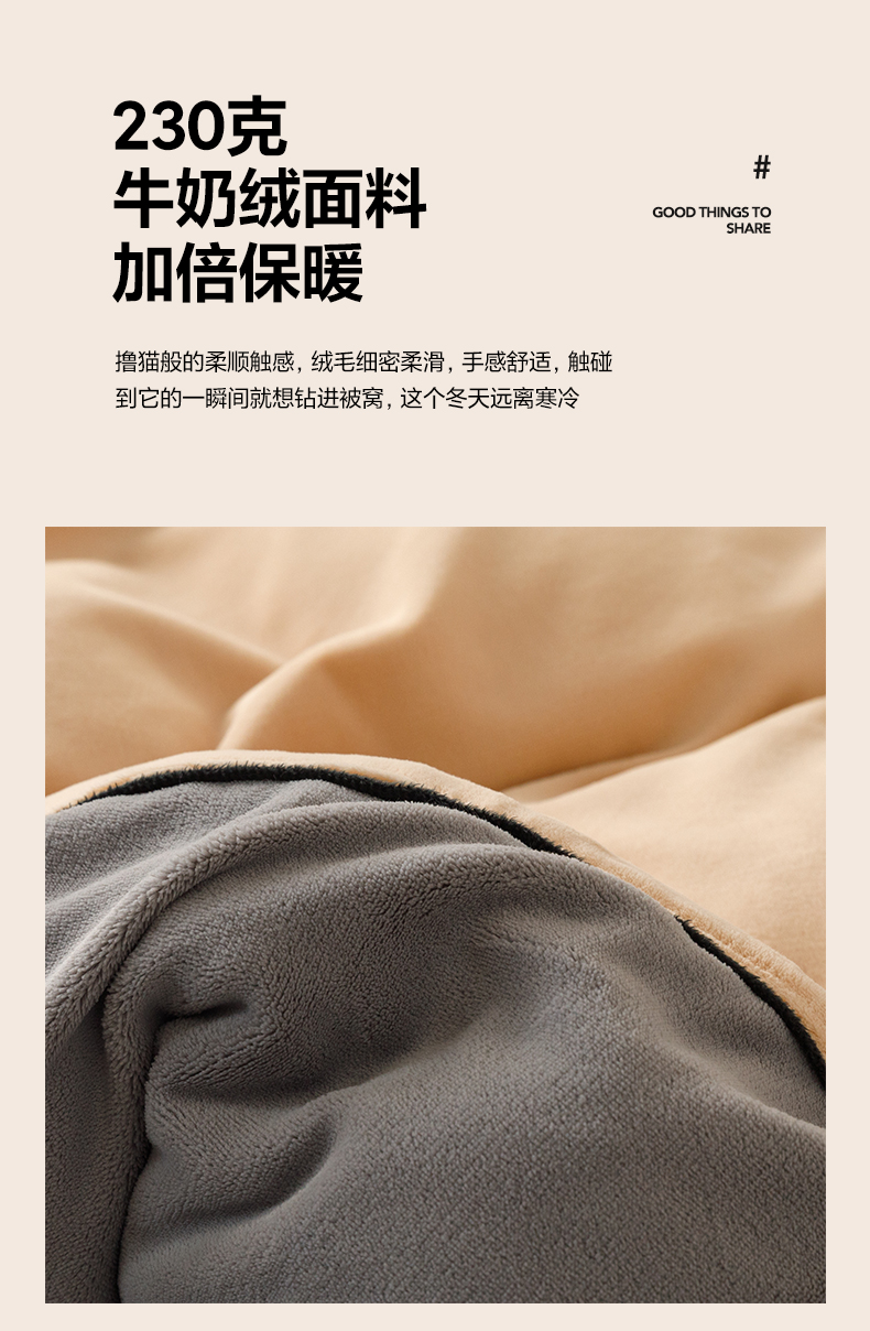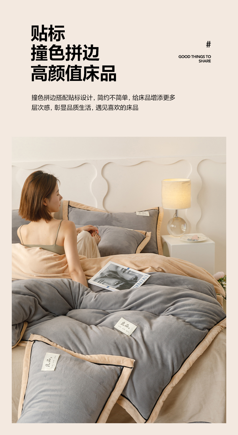 当前位置: 91家纺网 > 商品网购 > 床品套件 > 四件套 > 牛奶绒四件套 > 寐绸家纺 2025秋冬新款230g牛奶绒双拼四件套 双拼四件套-浅灰+米金