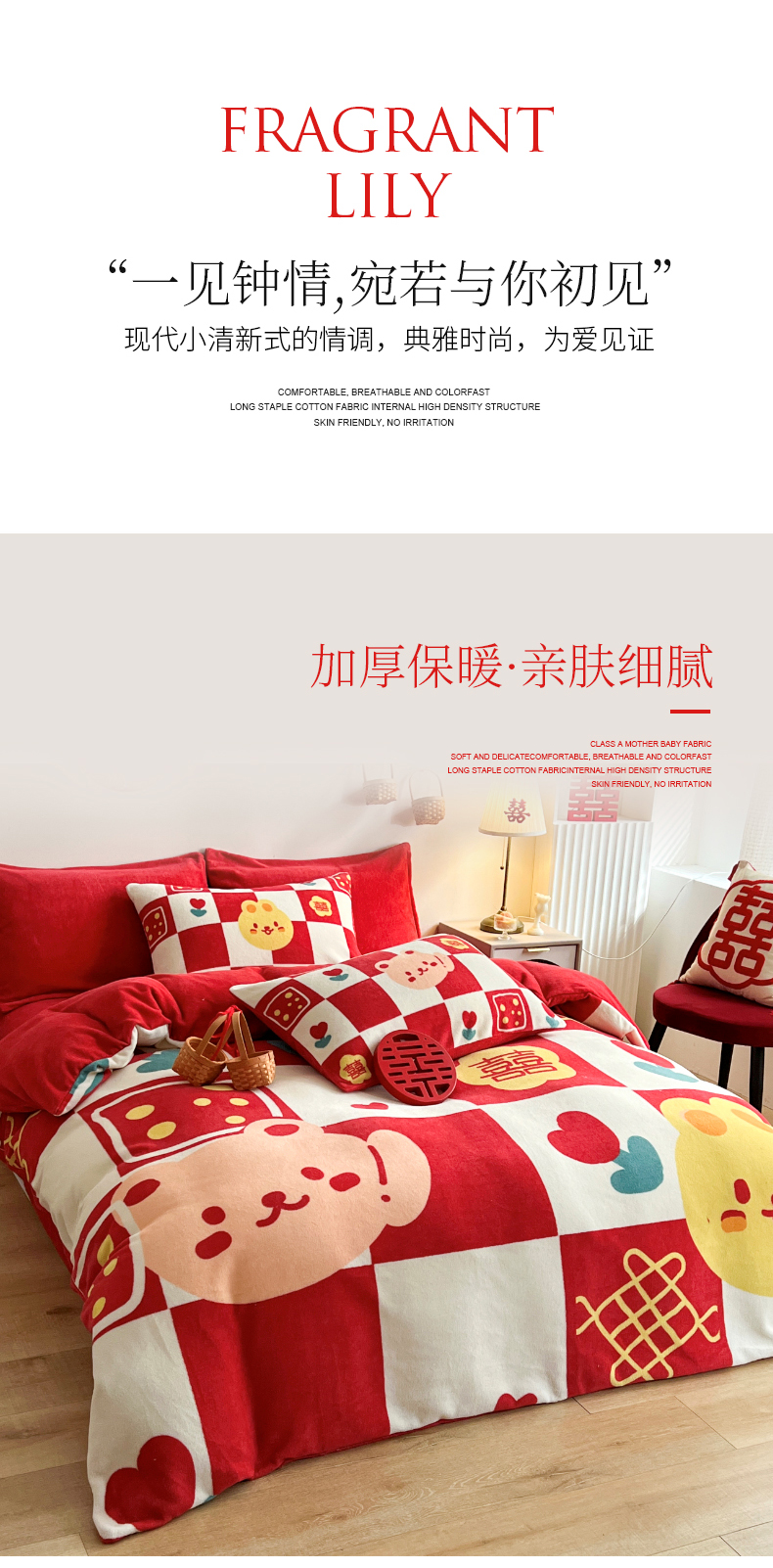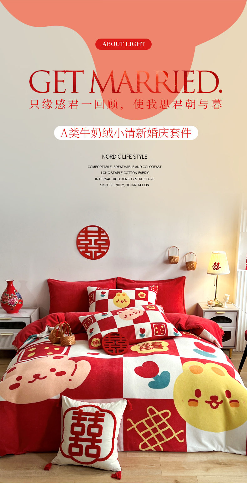 商品名称:一电 2025新款网红花婚庆牛奶绒四件套结婚喜被大红色新婚被罩婚嫁妆被套床单 喜多多